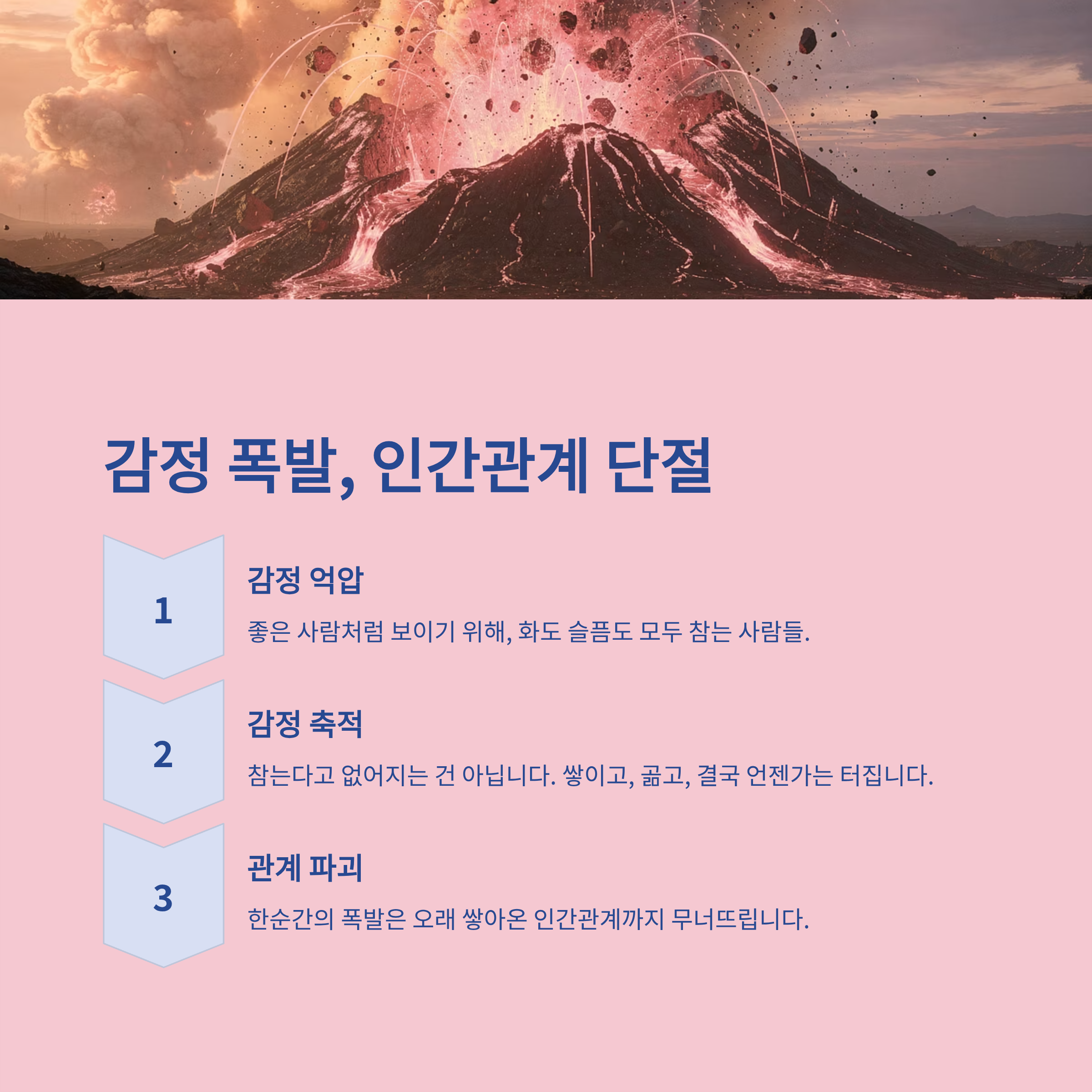 하지만 참는다고 없어지는 건 아닙니다. 쌓이고, 곪고, 결국 언젠가는 터집니다.