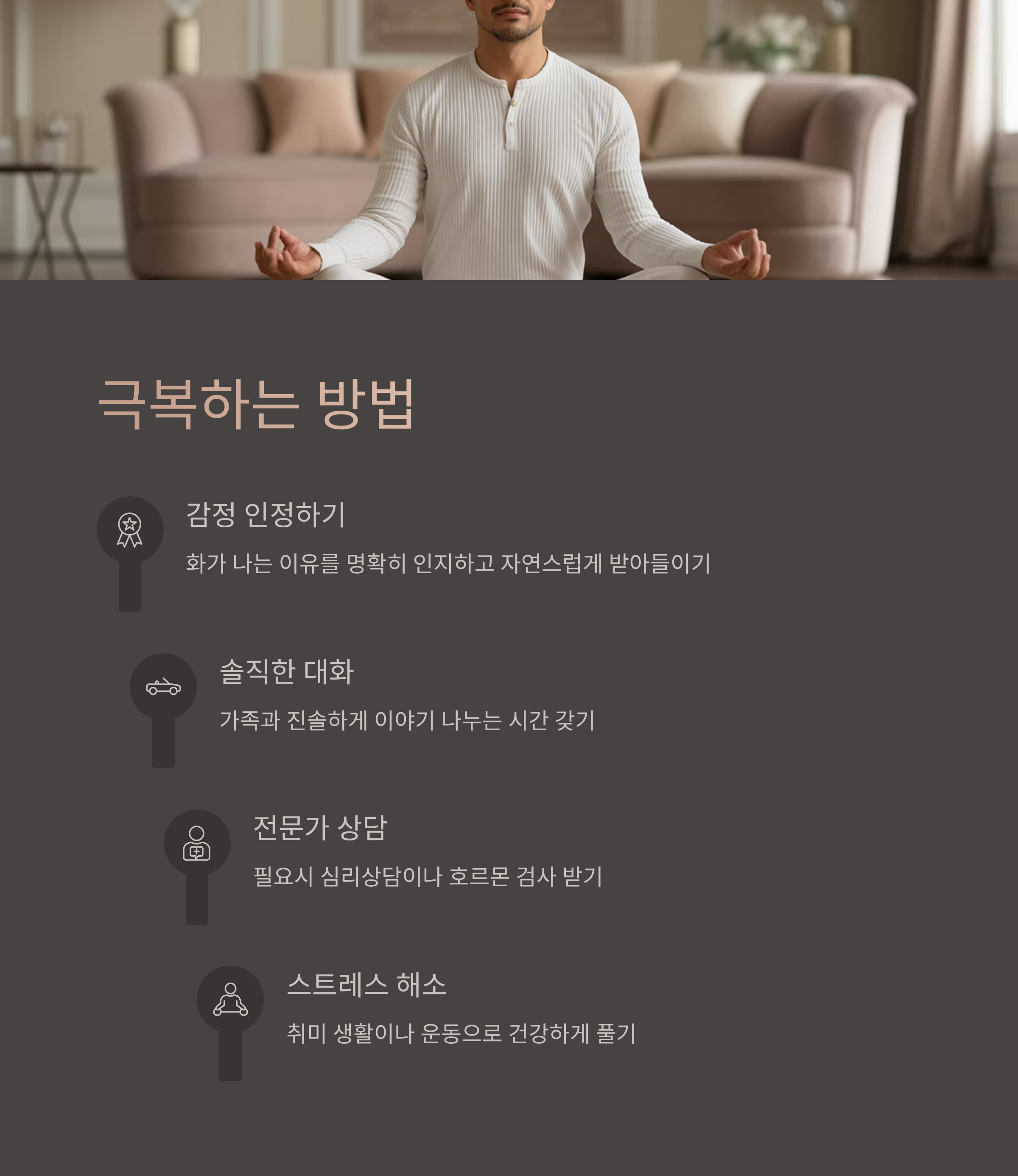 이러한 변화는 당사자가 명확히 인식하지 못한 채로 분노나 감정 폭발로 표출되기도 하죠.