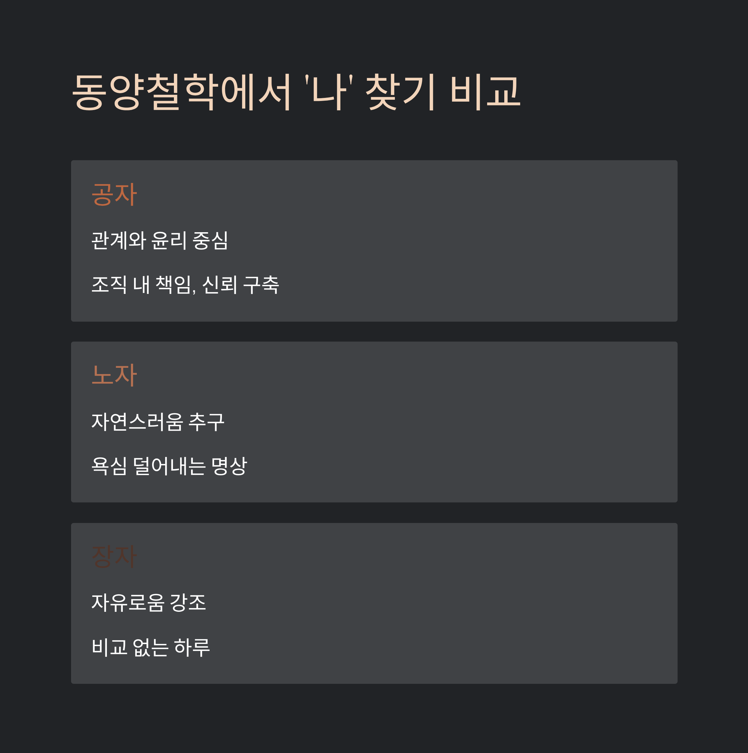 동양철학에서 ‘나’ 찾기 비교