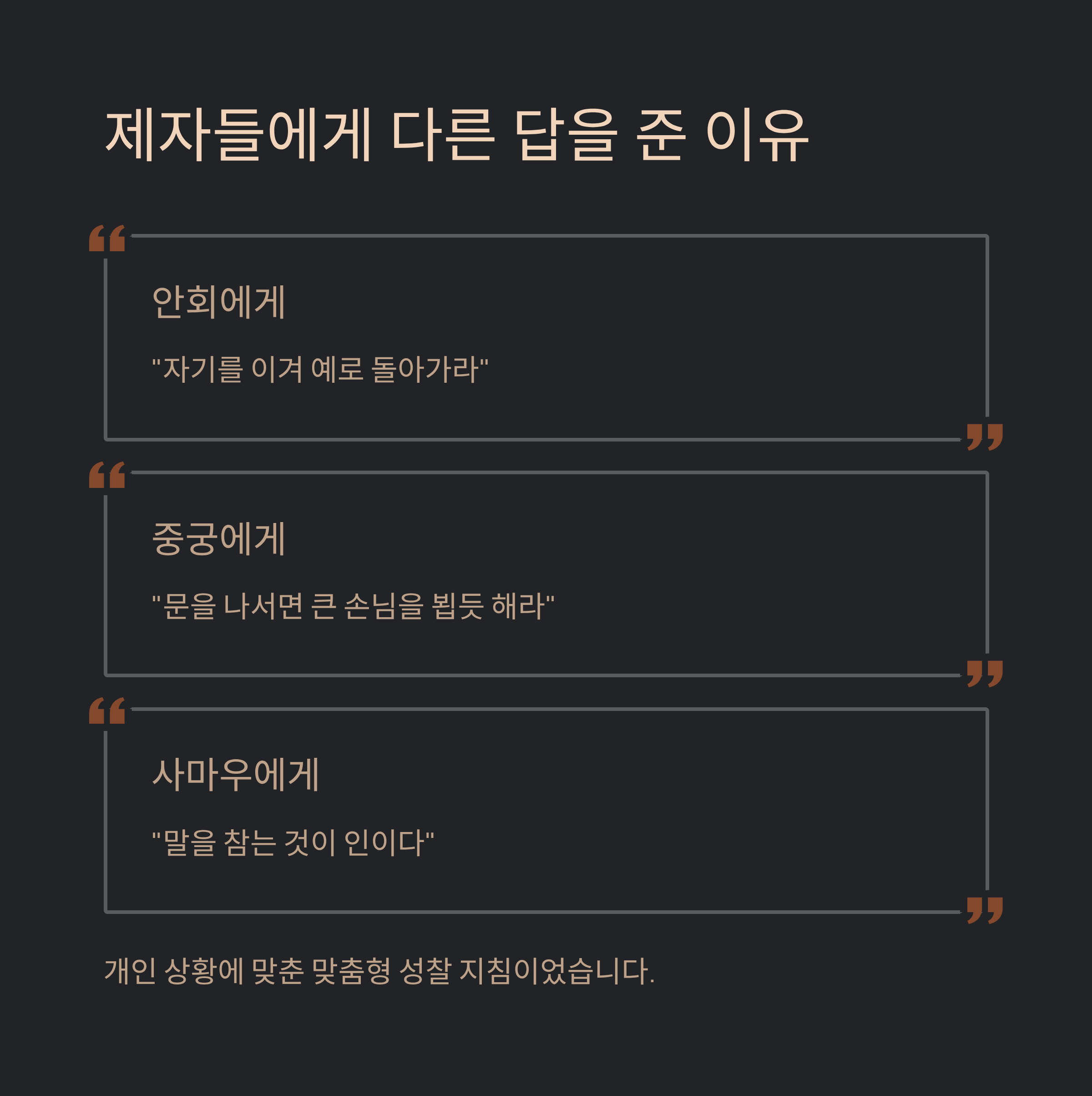 제자들에게 다른 답을 준 이유