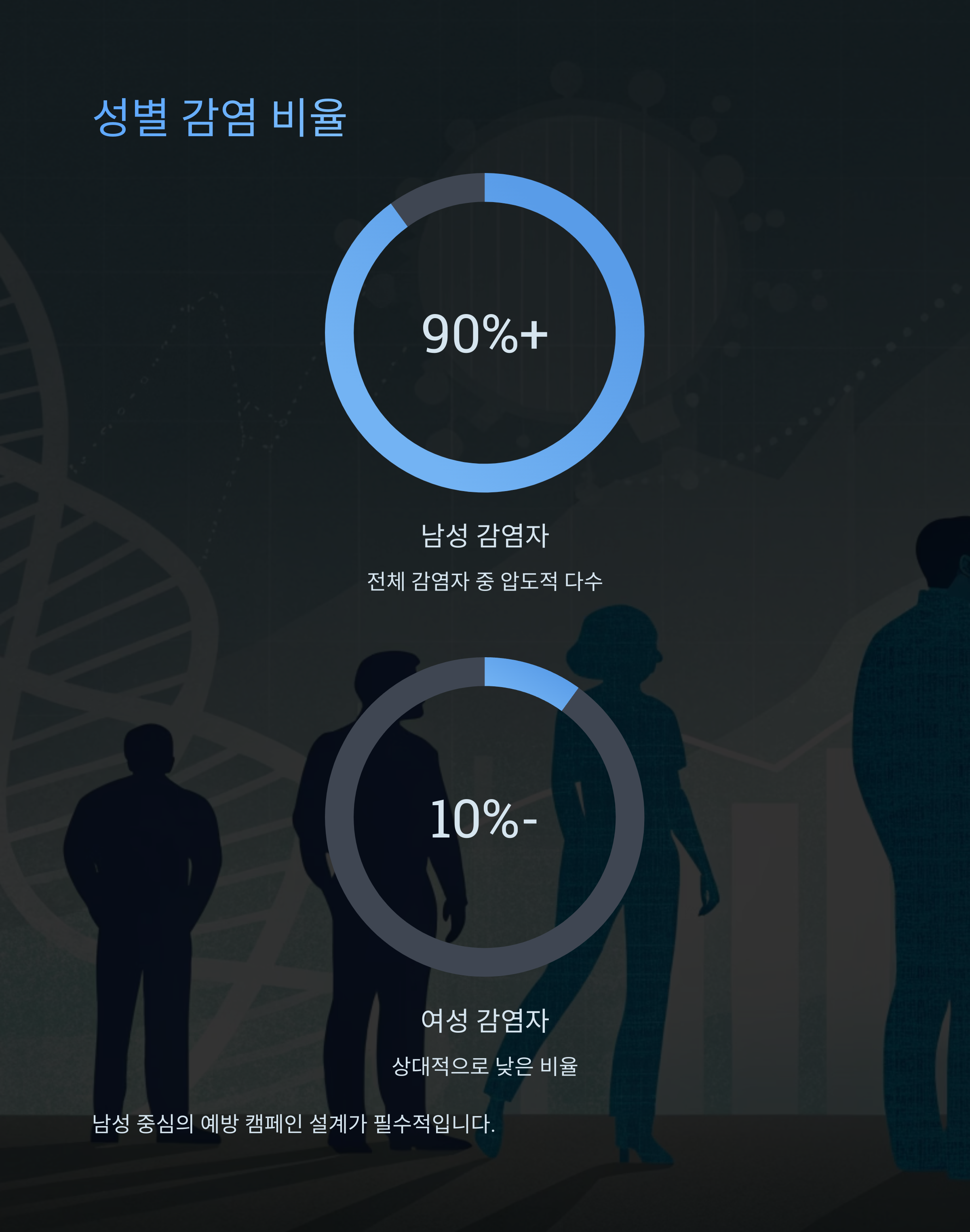 특정 성적 행동 양식이나 구조적 요인이 영향을 미치고 있는 것으로 보입니다.