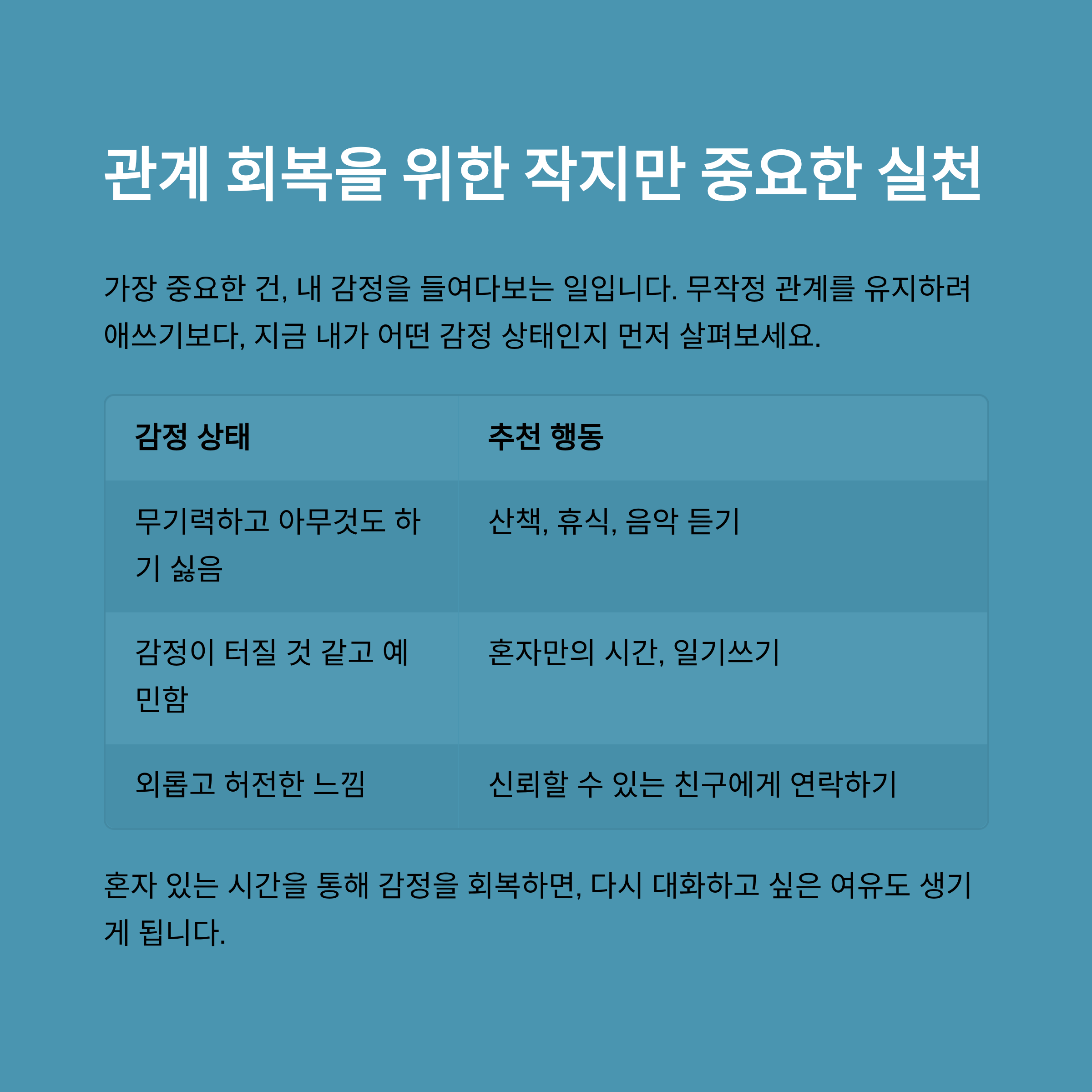 지친 내 마음을 돌보는 것이 관계를 지키는 첫걸음이에요.