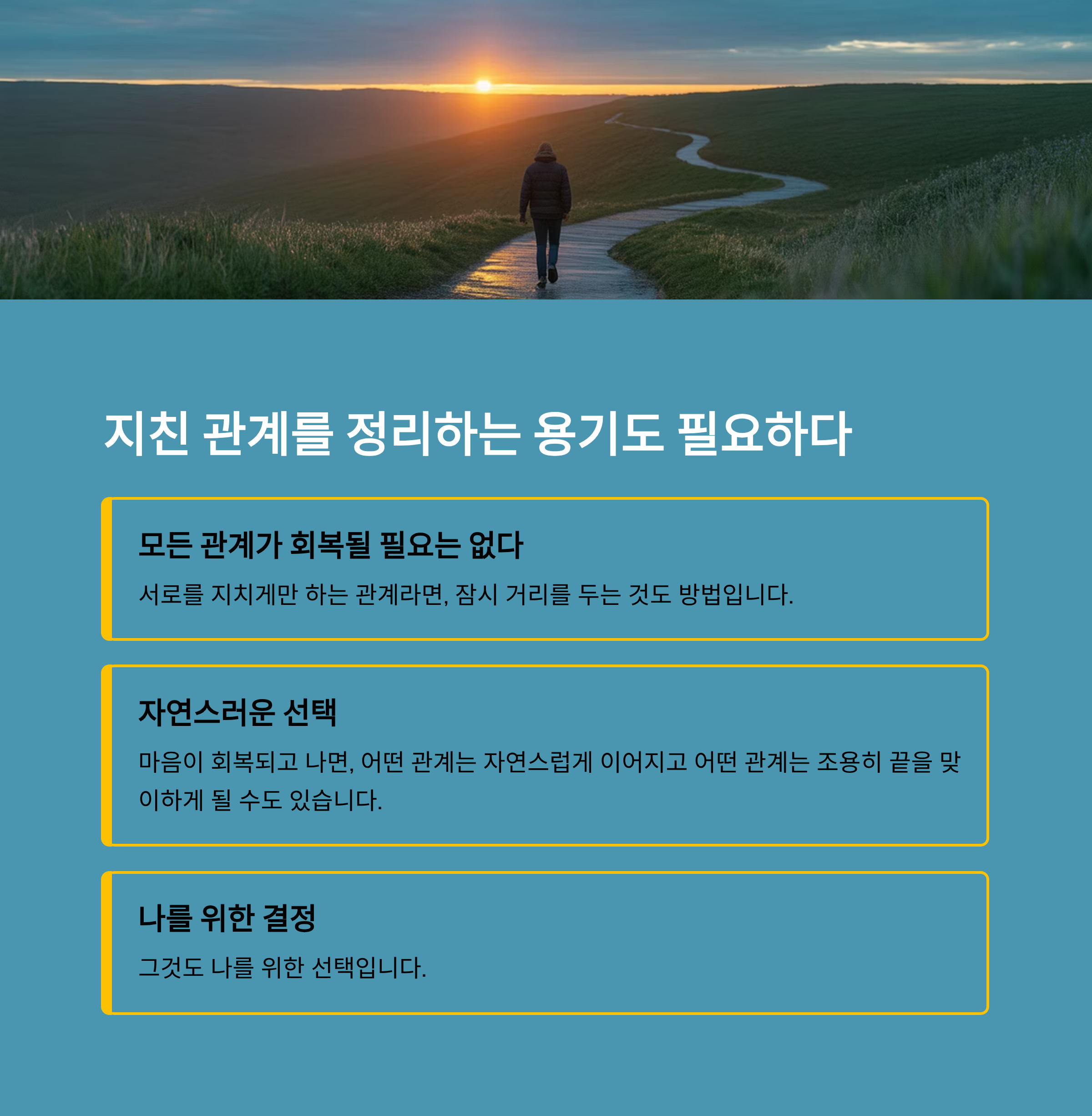 서로를 지치게만 하는 관계라면, 잠시 거리를 두는 것도 방법이에요.