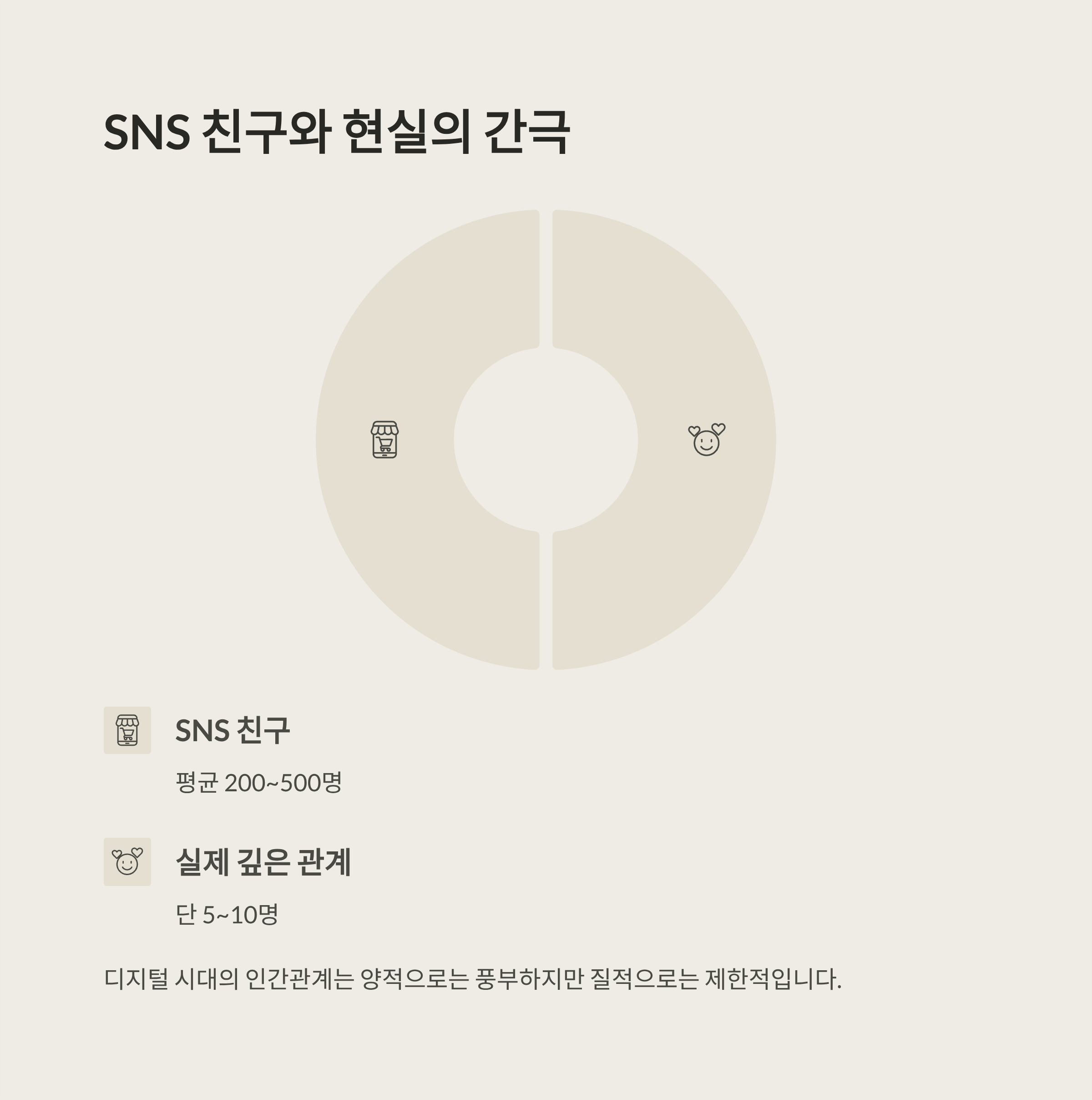 이 차이는 디지털 시대 인간관계의 양적·질적 간극을 잘 보여줍니다.
