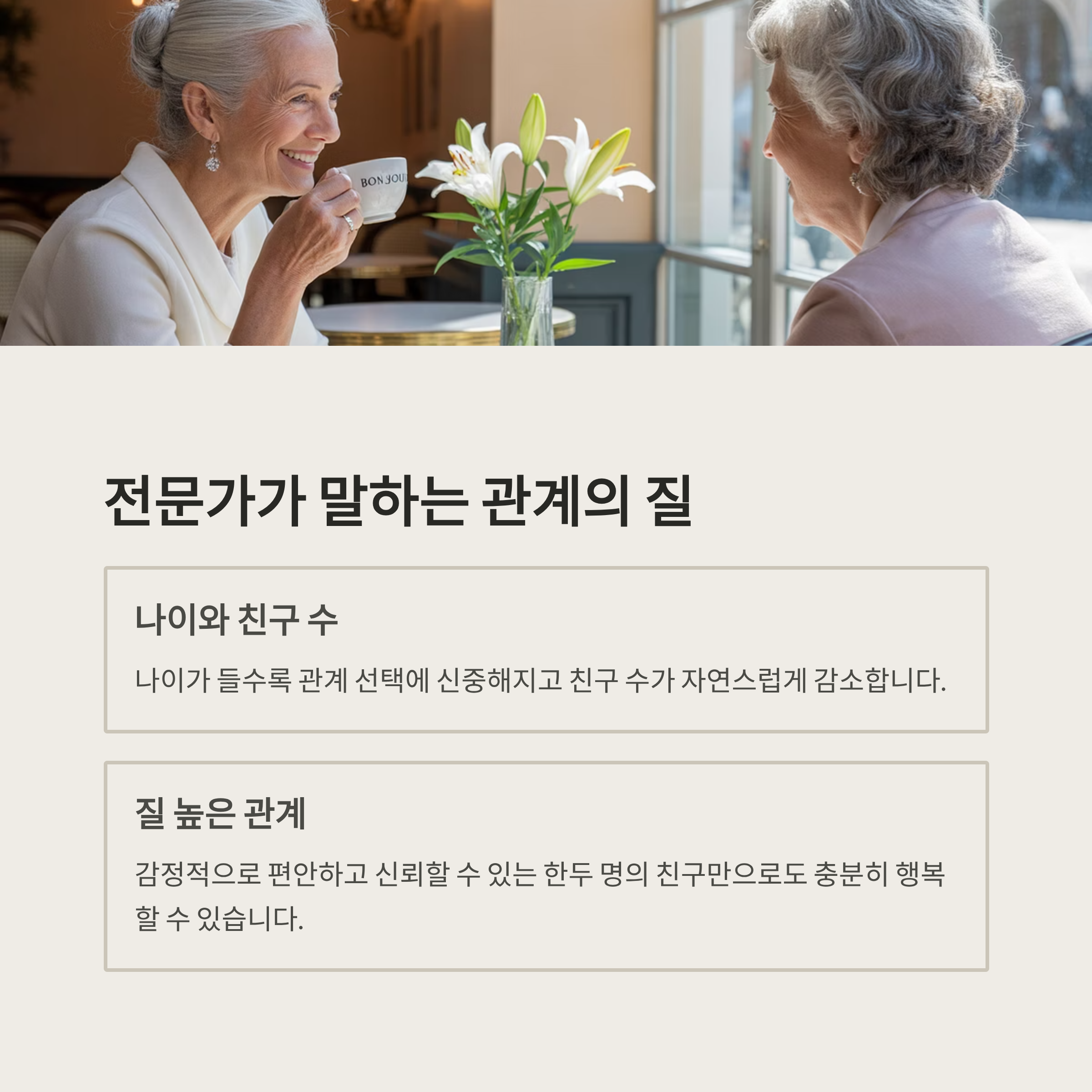 사회적 활동이 줄면서 친구 수가 자연스럽게 감소한다고 말합니다.