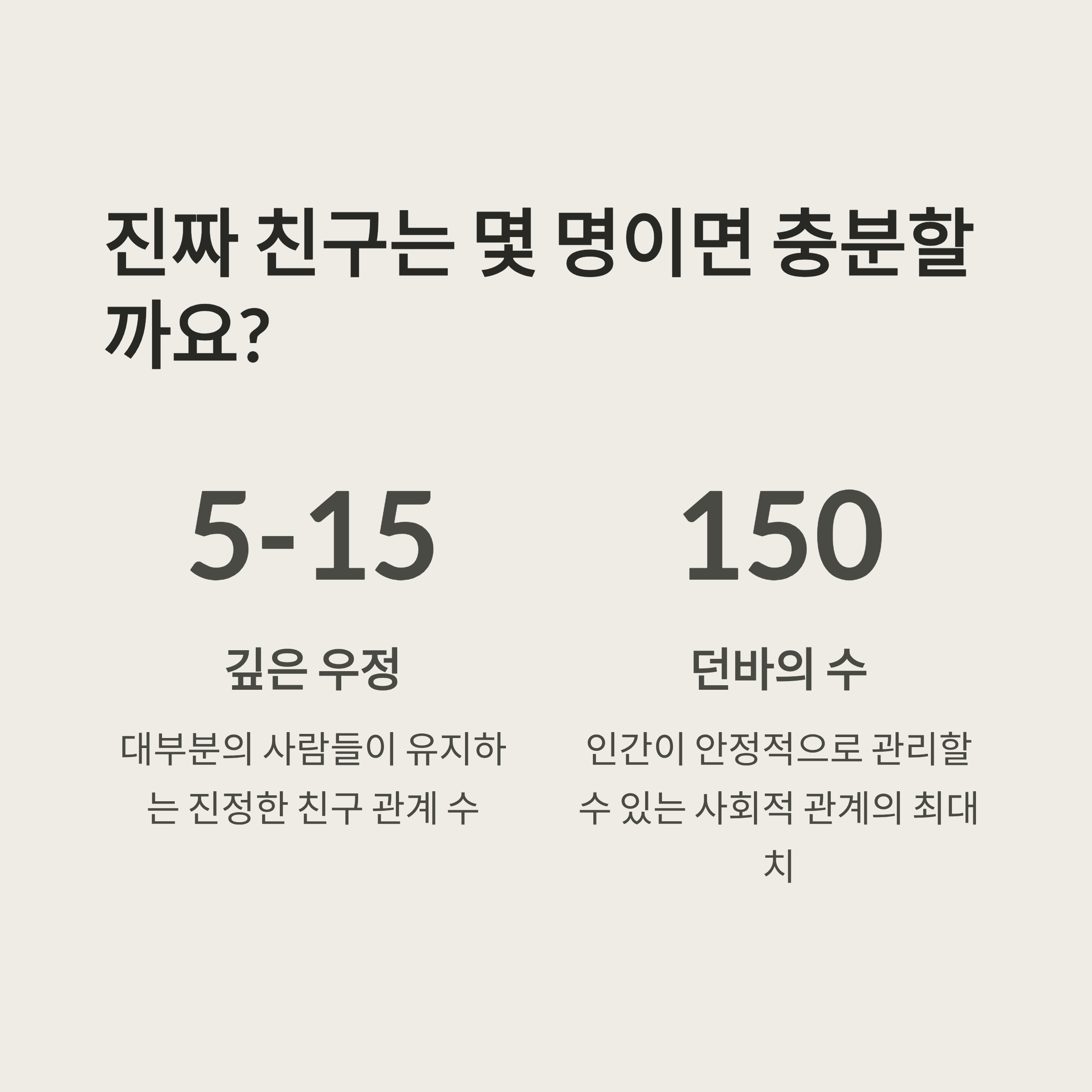 대부분 15명~30명 이하이며, 깊은 우정은 5명~15명에 불과하다고 합니다.