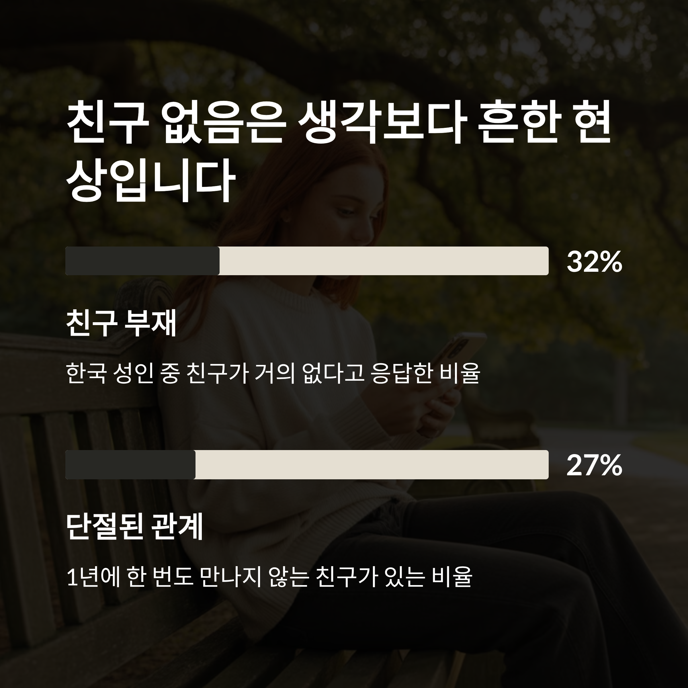한국 성인의 32%는 친구가 거의 없다고 응답했고,