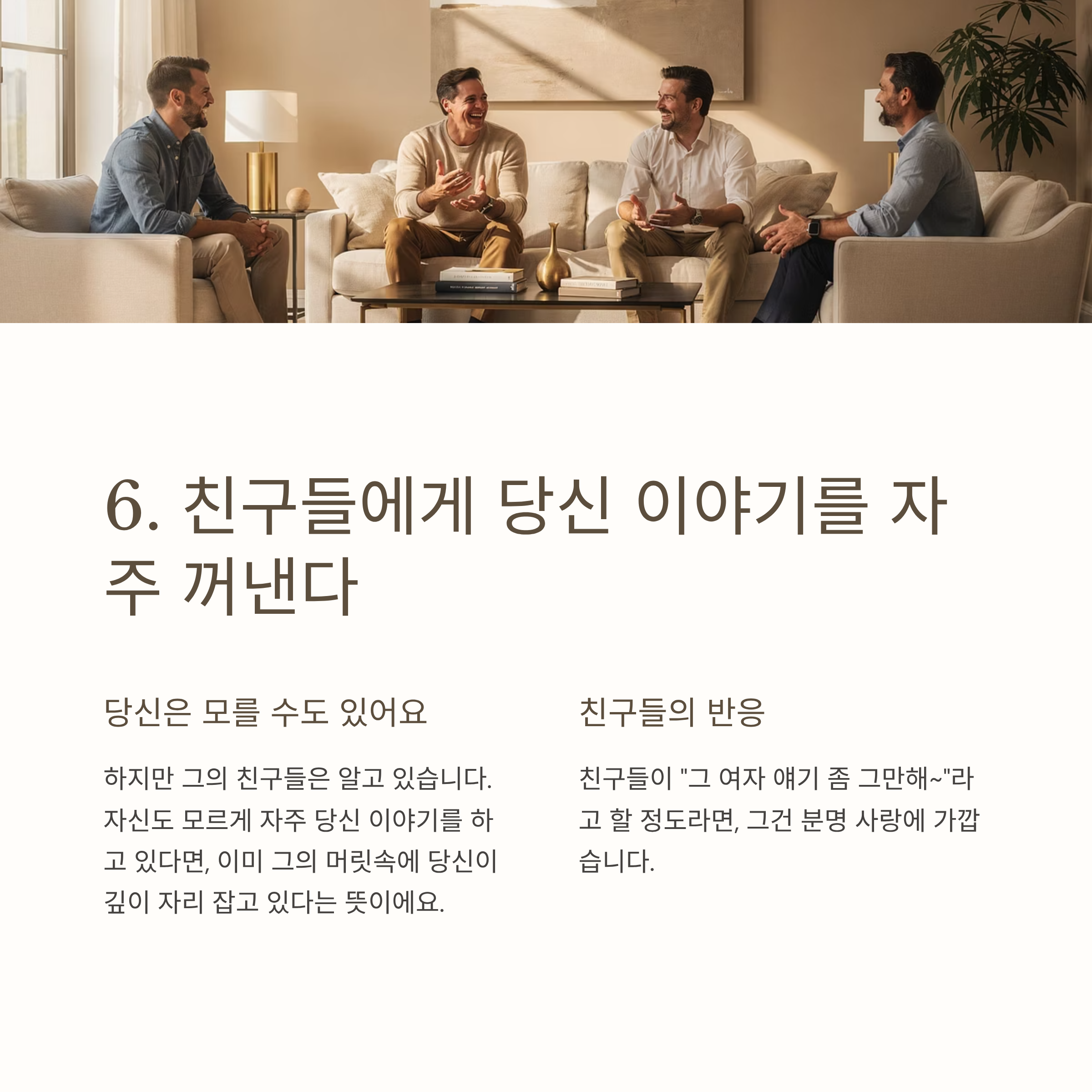 친구들이 "그 여자 얘기 좀 그만해~"라고 할 정도라면, 그건 분명 사랑에 가깝습니다.