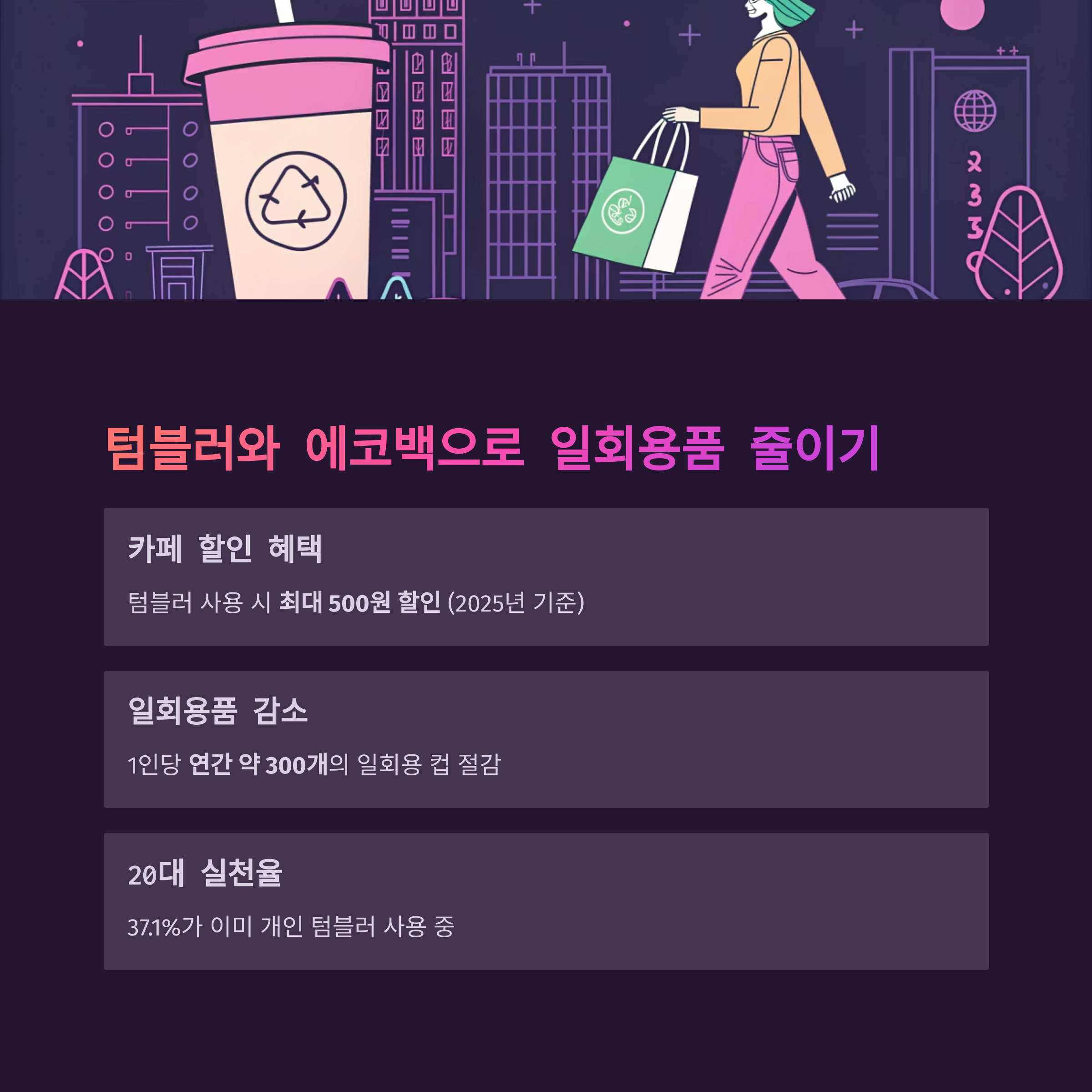 | 텀블러·에코백 | 연 300개 일회용 컵 절감 | 20대 37.1% 실천 중 |