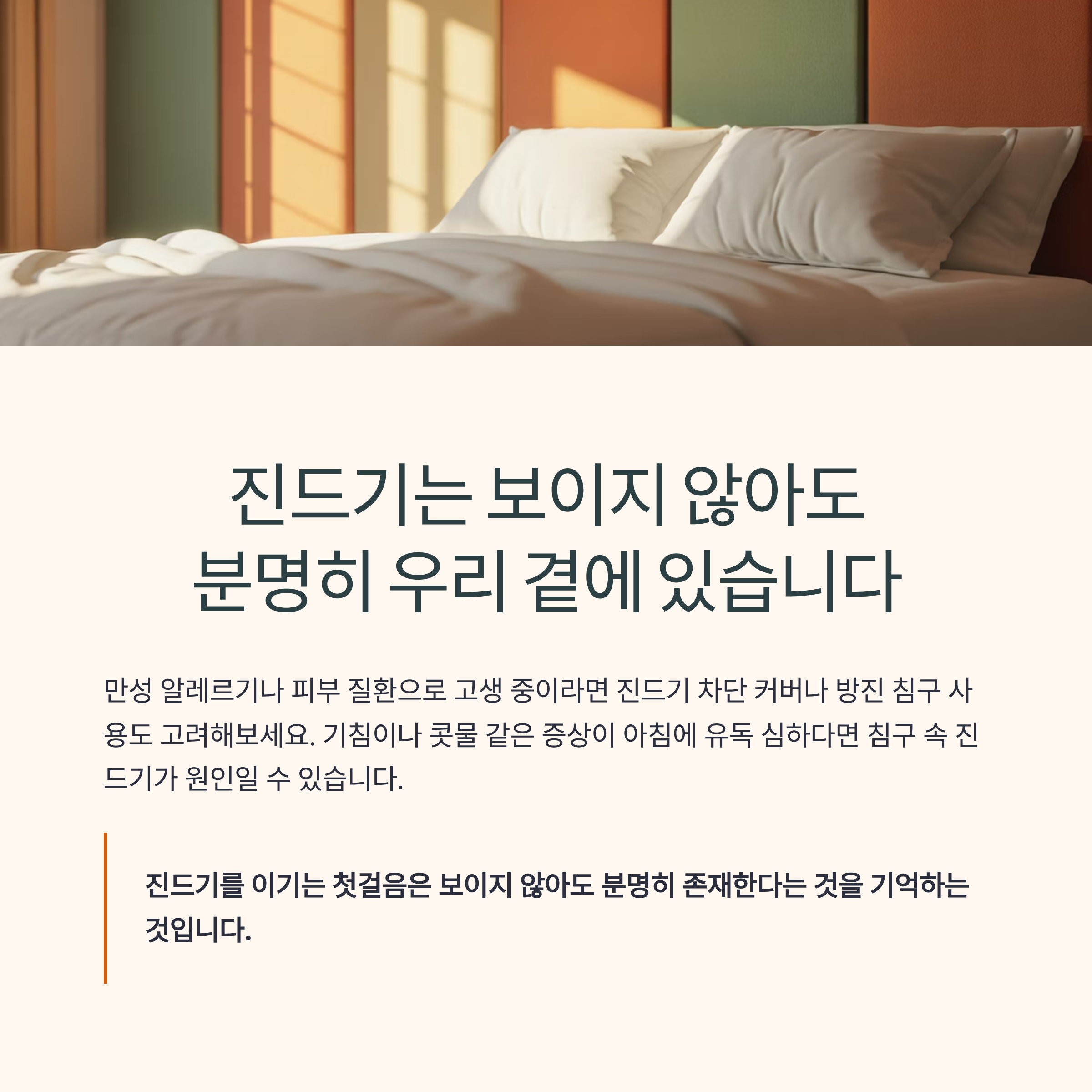 진드기 차단 커버나 방진 침구 사용도 고려해보는 것이 좋습니다.