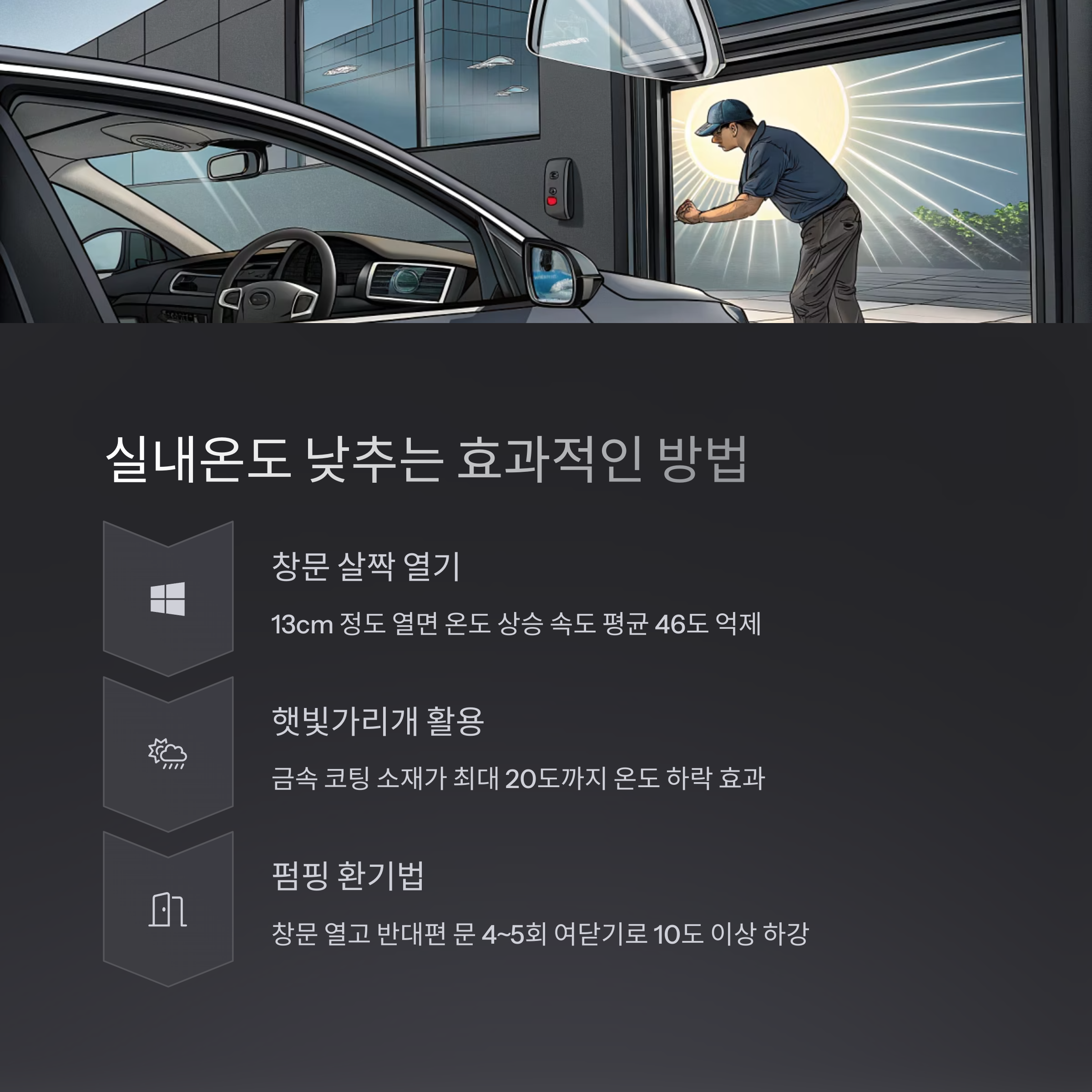 3. 펌핑 환기법: 창문 열고 반대편 문 4~5회 여닫기 = 10도 하강
