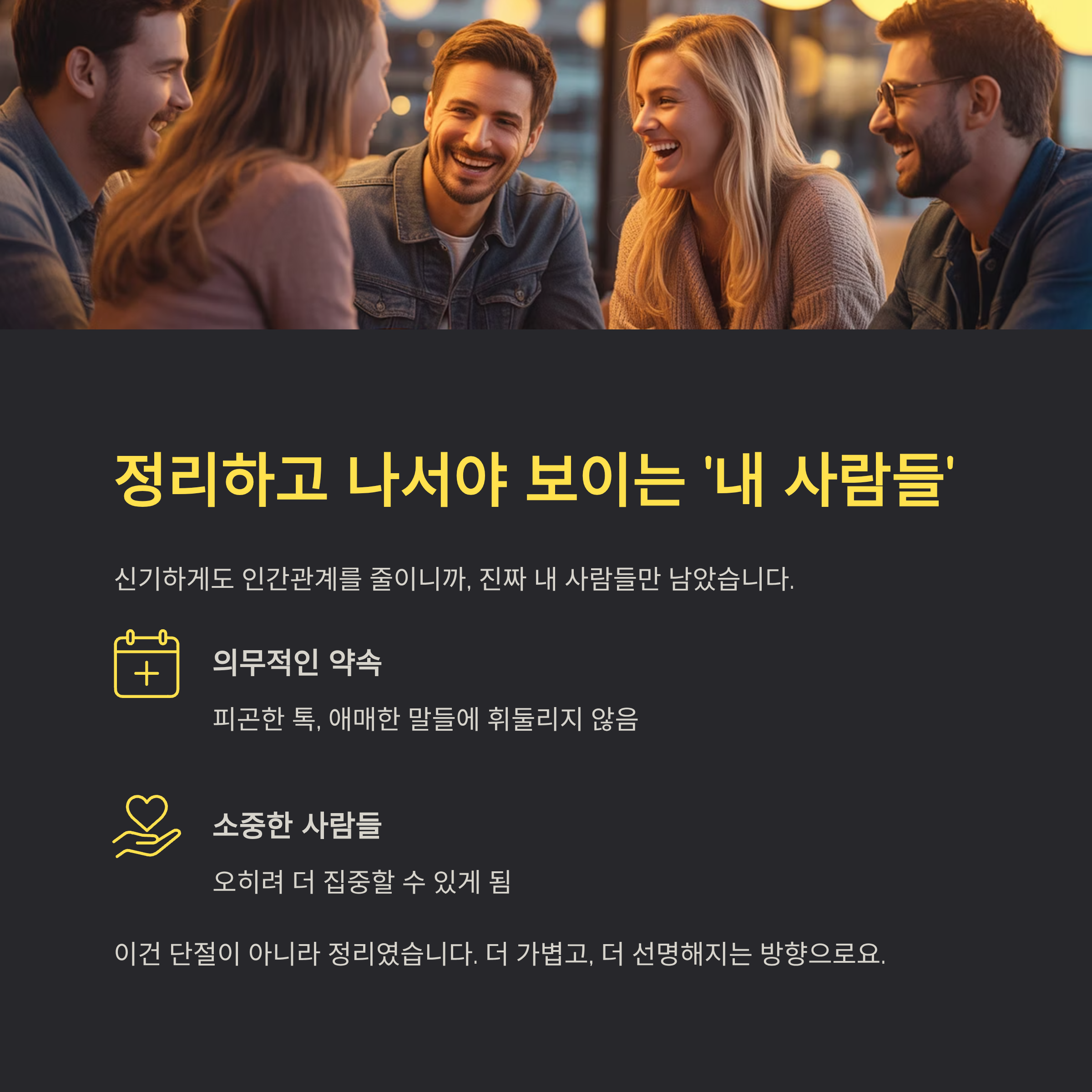 신기하게도 인간관계를 줄이니까, 진짜 내 사람들만 남더라고요.