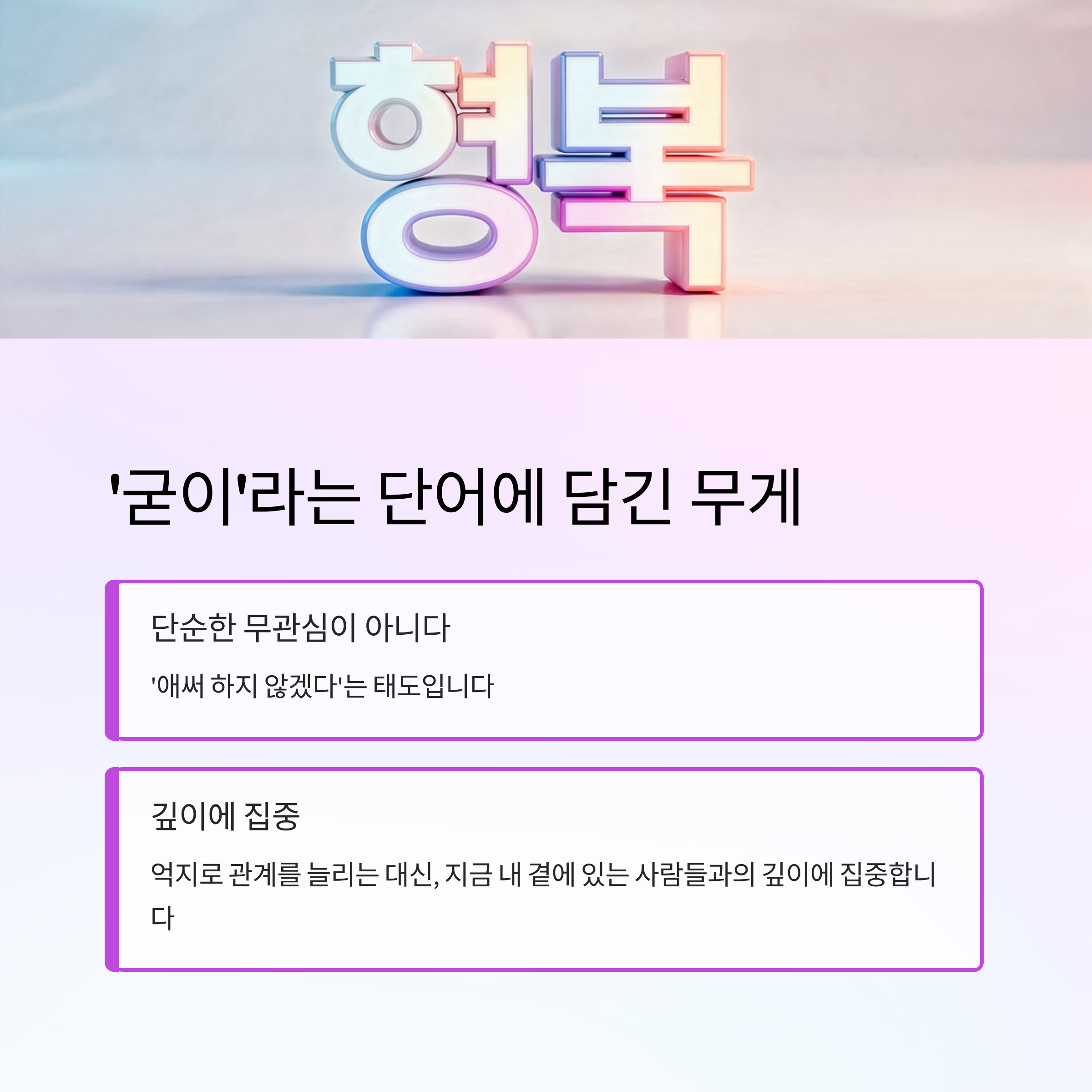 지금 내 곁에 있는 사람들과의 깊이에 집중하겠다는 철학이 느껴집니다.