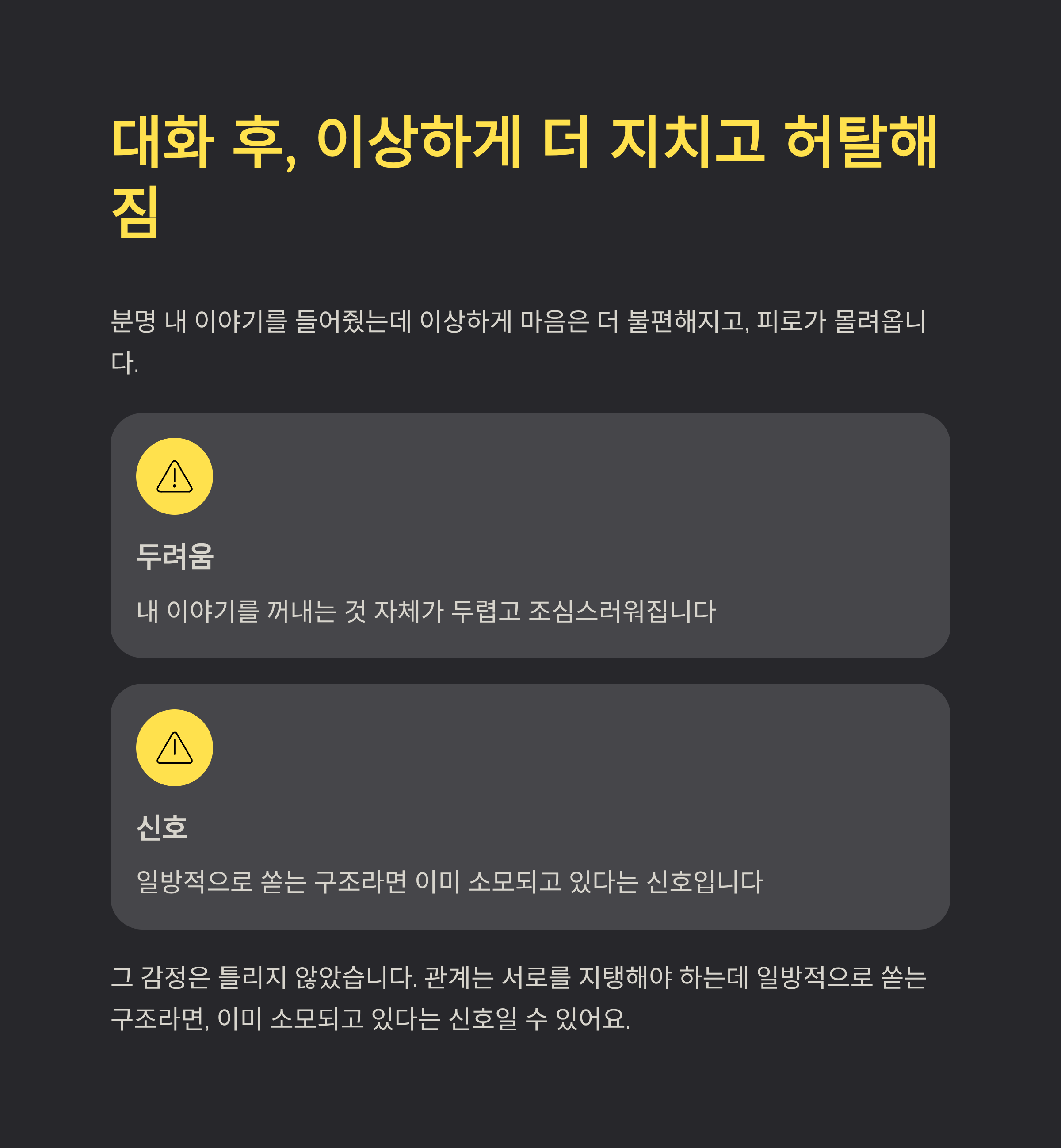 대화 후, 이상하게 더 지치고 허탈해짐