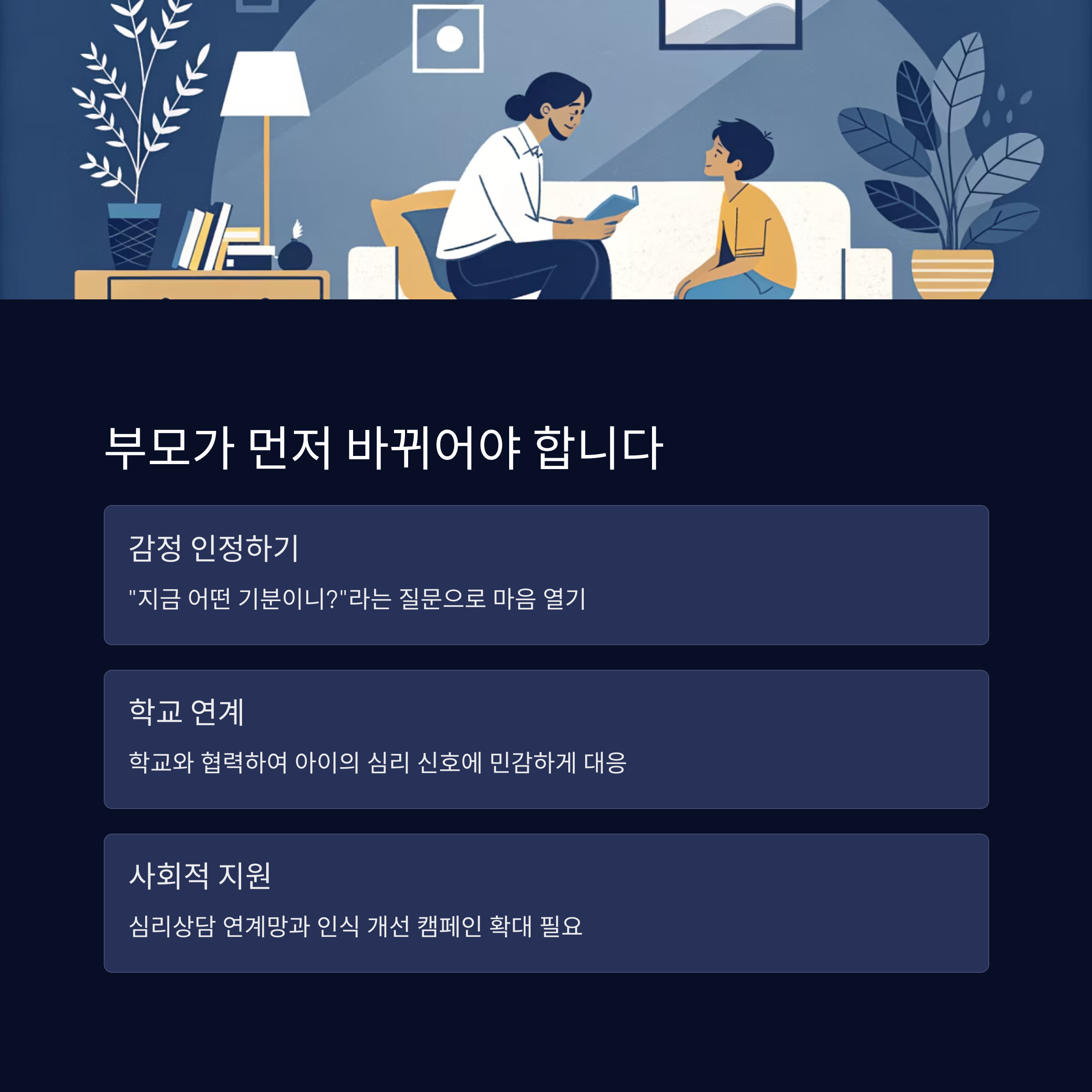 중요한 건 조기 개입이며, 상담은 결코 부끄러운 일이 아닙니다.