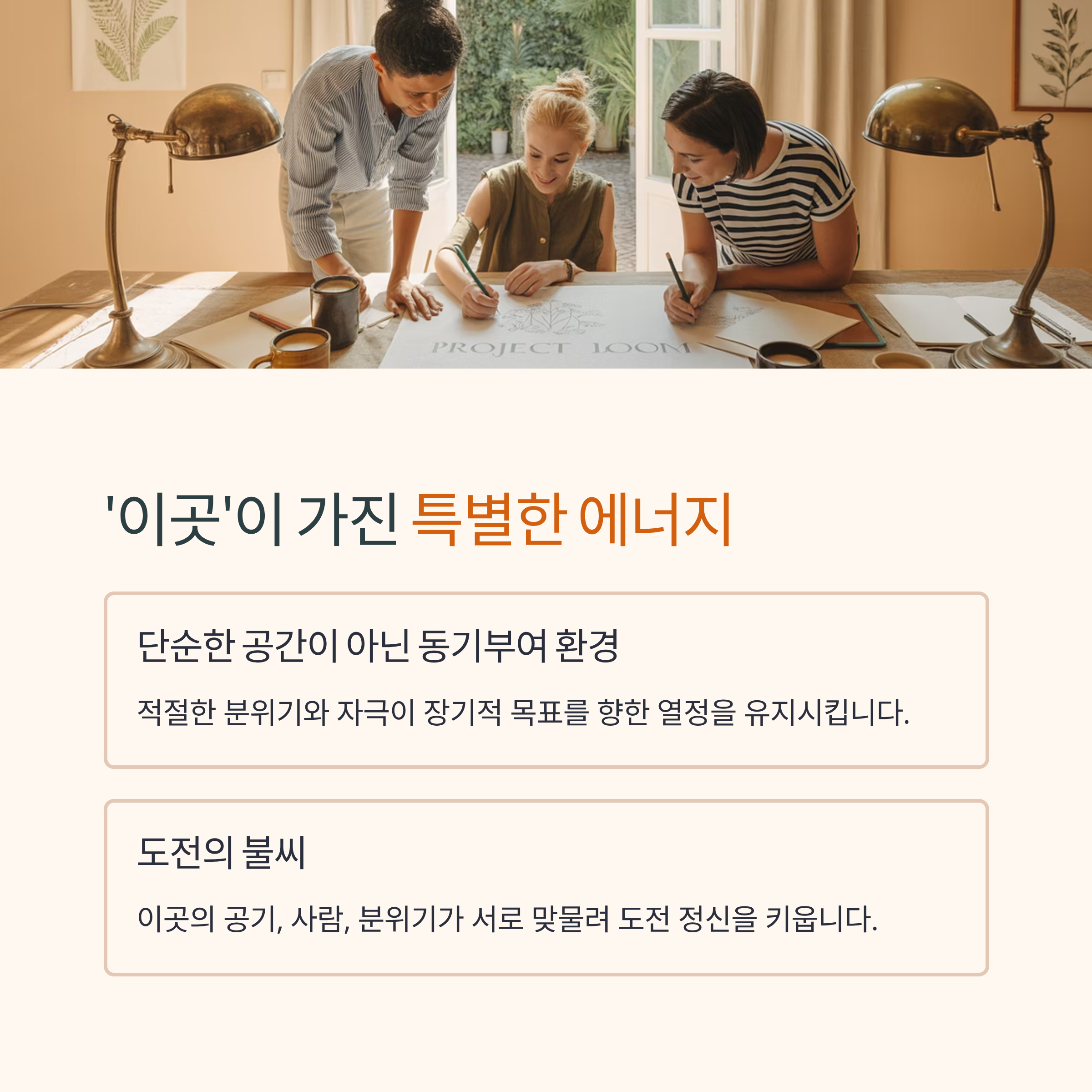 이곳은 방해 요소를 최소화하고 집중력을 끌어올리는 구조를 갖추고 있습니다.