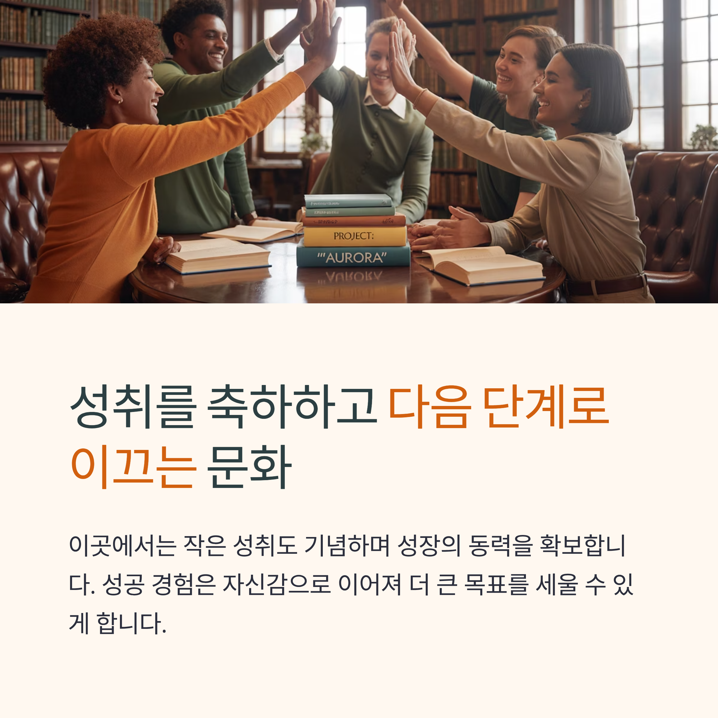 이곳에서는 작은 성취도 기념하며 성장의 동력을 확보합니다.