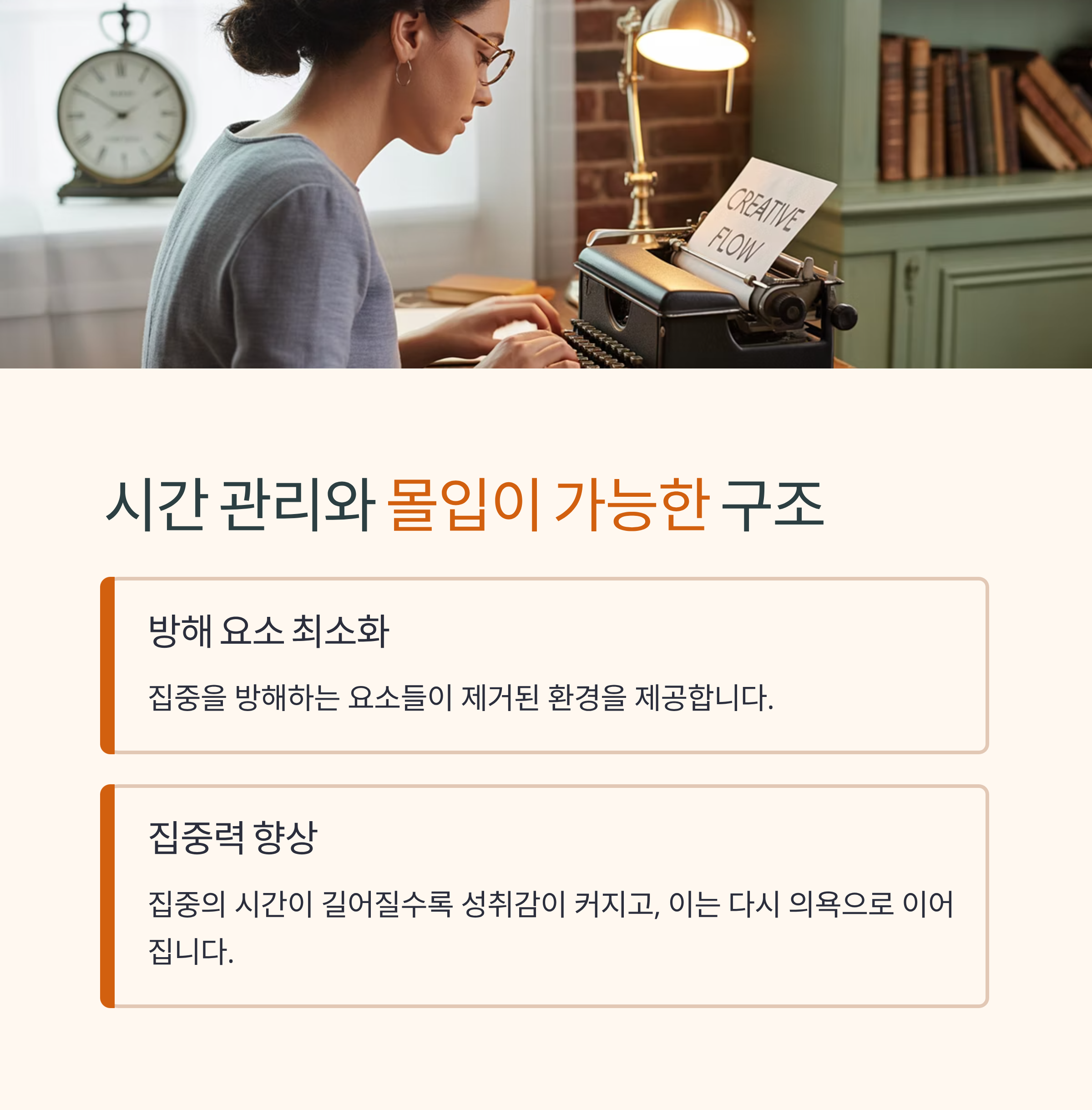 집중의 시간이 길어질수록 성취감이 커지고, 이는 다시 의욕으로 이어집니다.