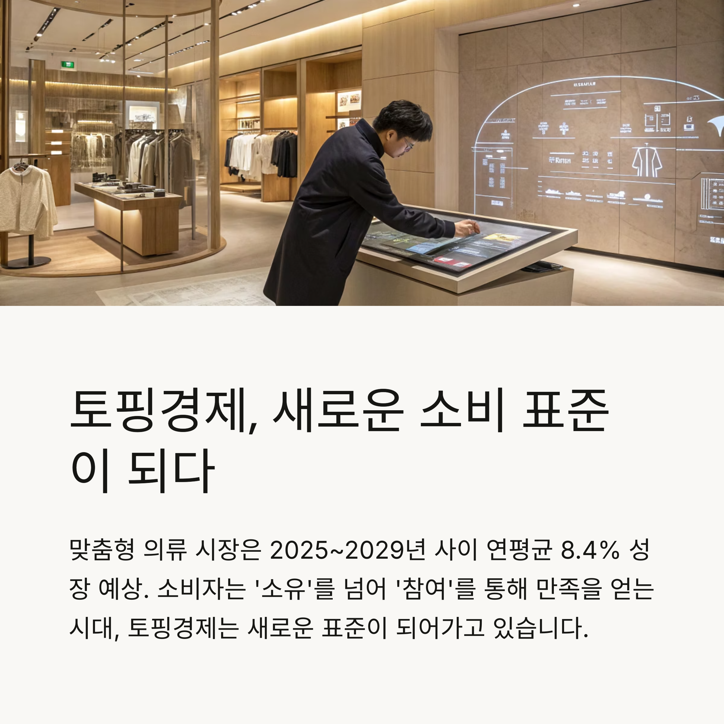 커스터마이징 시장은 앞으로 더 커질 전망입니다. 맞춤형 의류 시장만 해도 2025년에서 2029년 사이 연평균 8.4%의 성장을