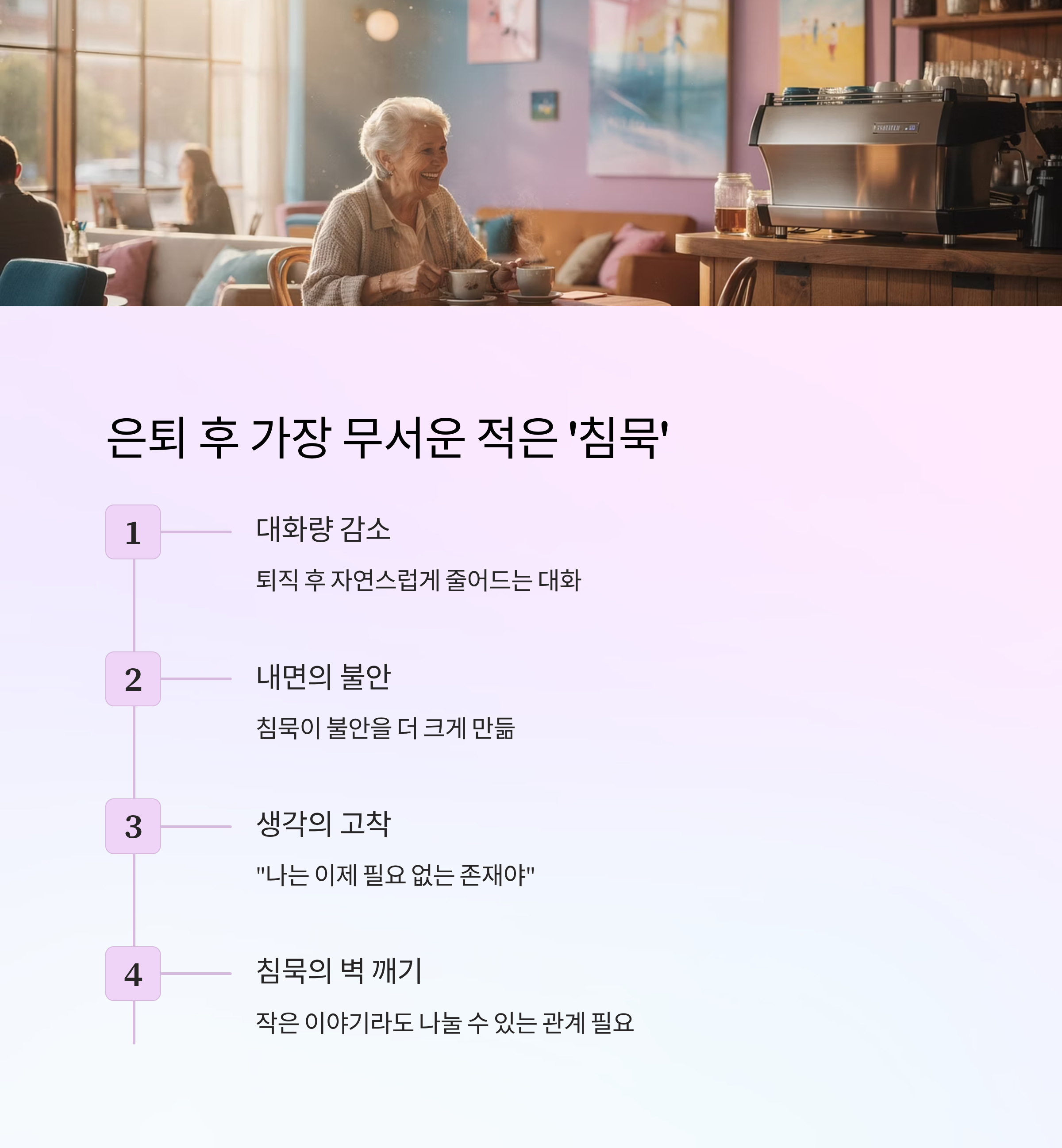 퇴직 후 삶의 변화는 누구에게나 낯설고 무거운 일입니다. 그런데 유독 일부 사람들은 퇴직 후 인간관계에서 점점 멀어지고 스스로를 고립시키는 경향이 있습니다. 이들의 말버릇에는 공통적인 심리가 숨어 있는데요. 오늘은 퇴직 후 고립되는 사람들이 자주 하는 말, 그 1순위 표현과 그 안에 담긴 진짜 마음을 들여다봅니다.