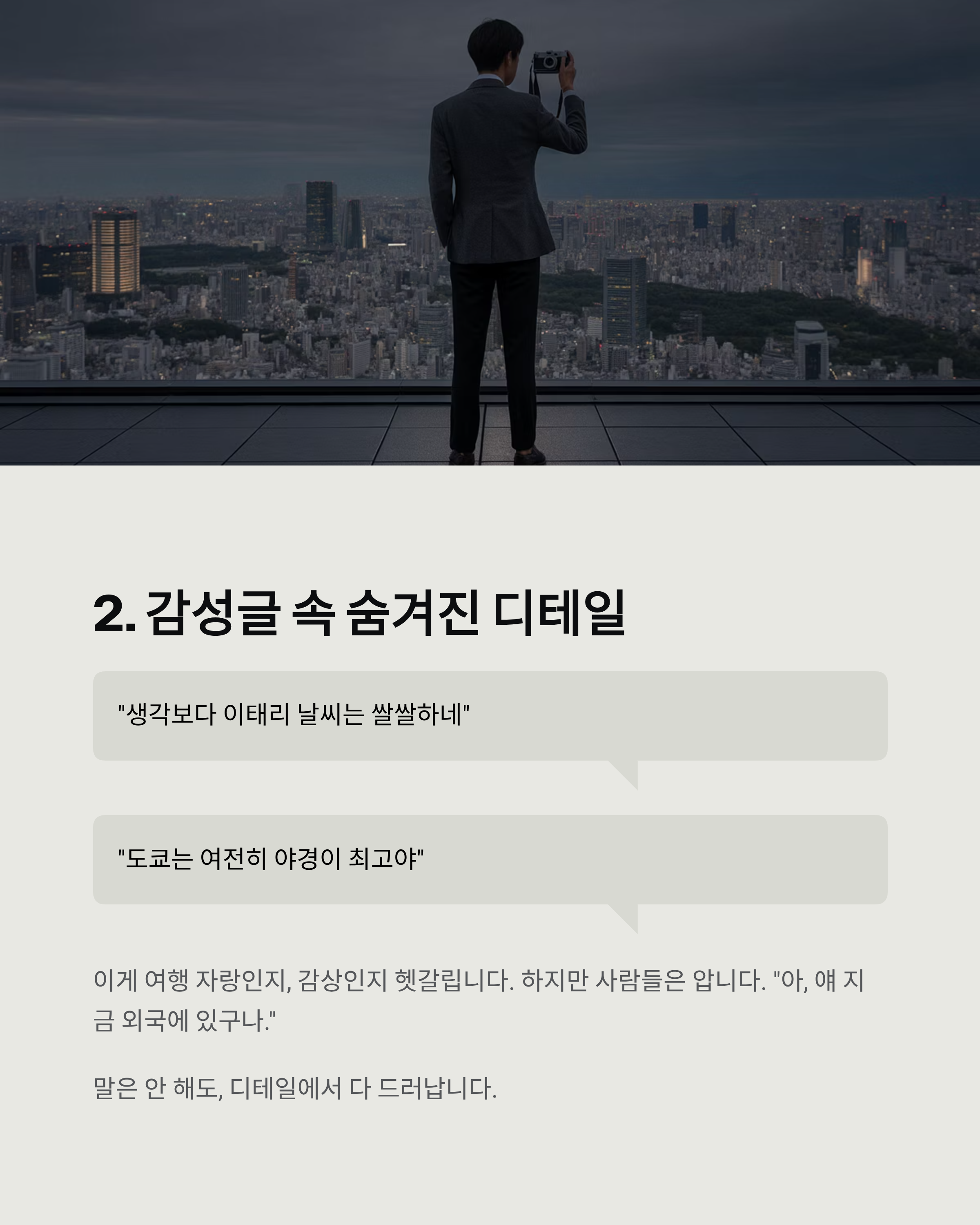 이게 여행 자랑인지, 감상인지 헷갈립니다.