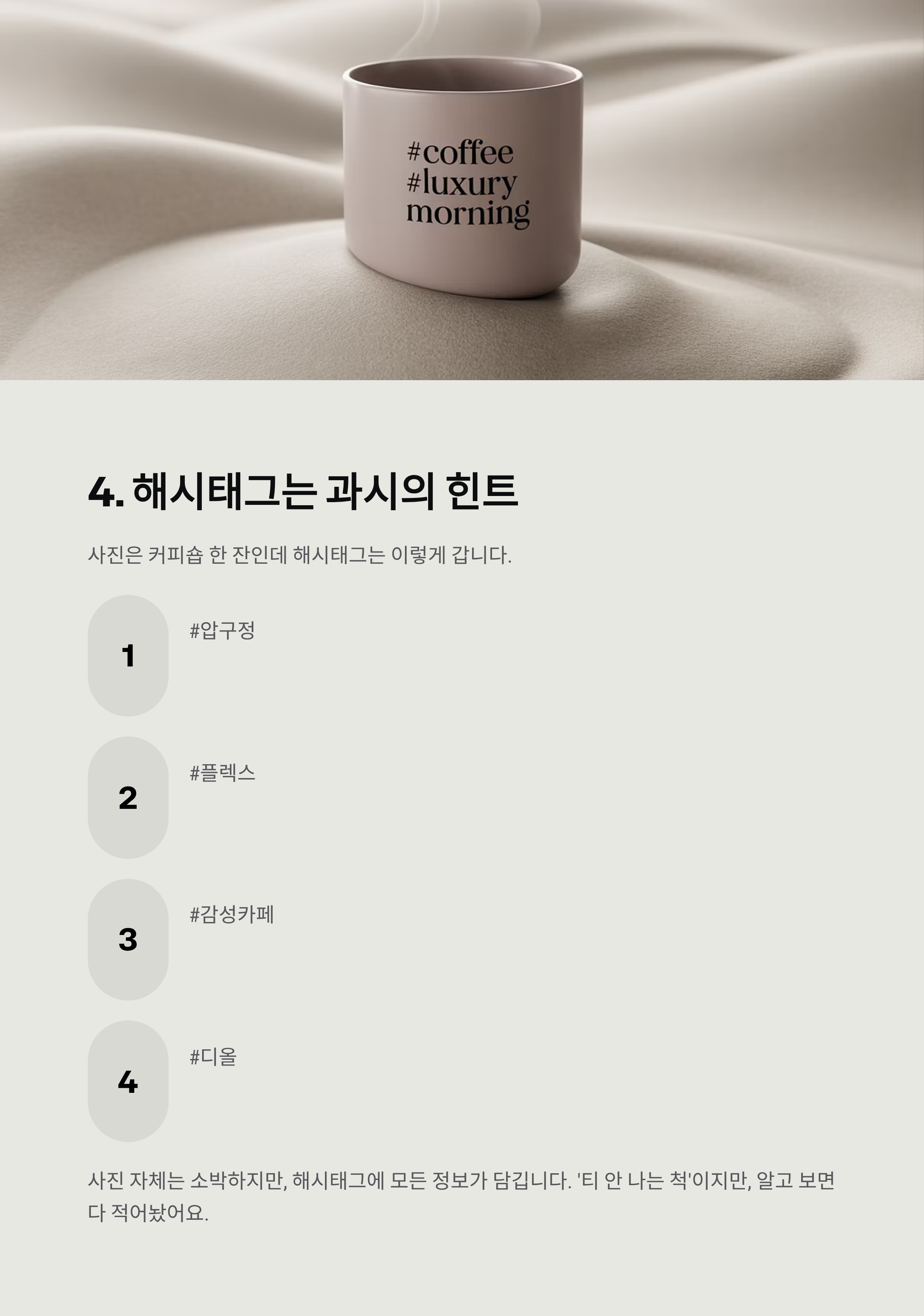 사진은 커피숍 한 잔인데 해시태그는 이렇게 갑니다.