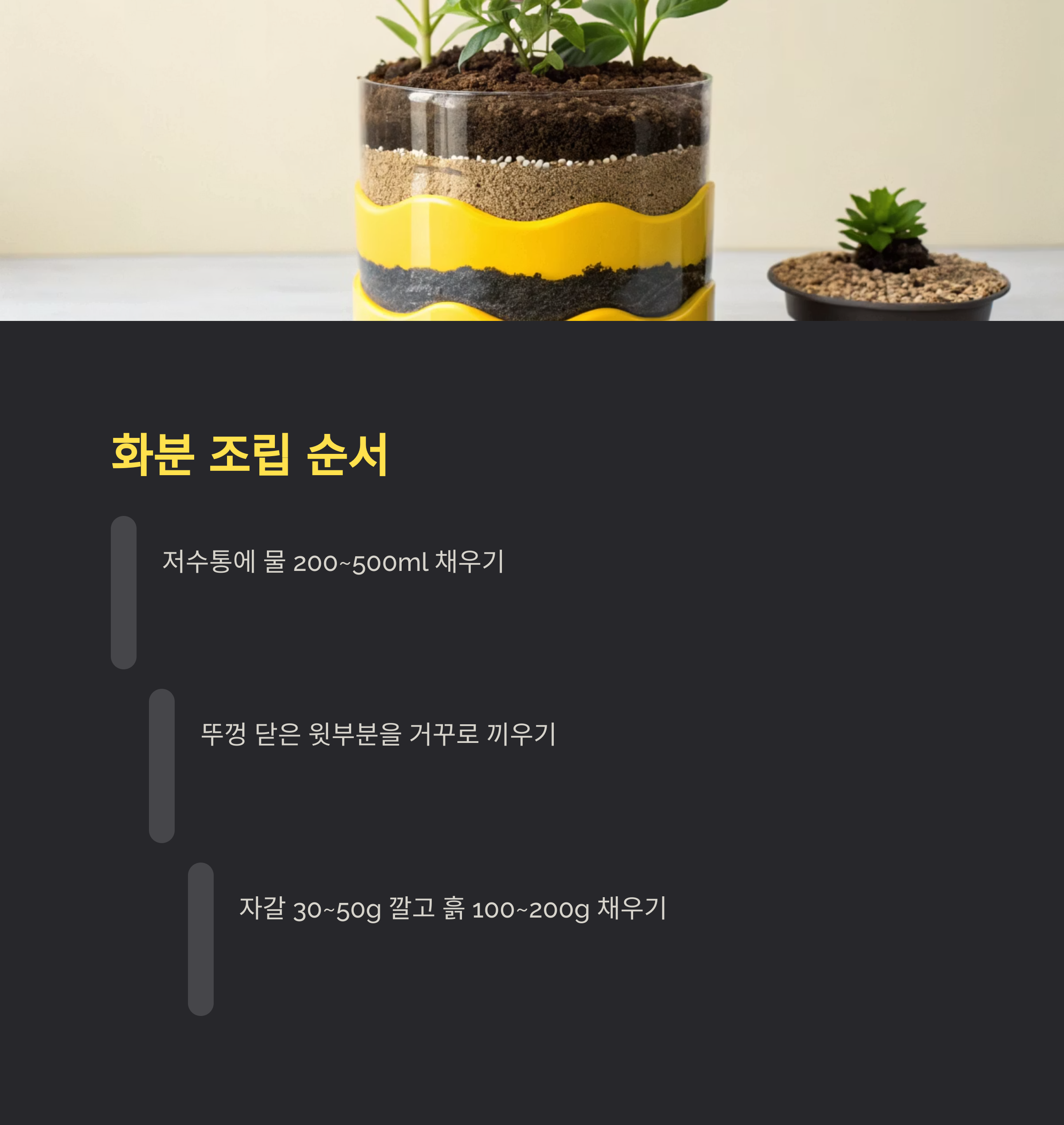 식물 종류에 따라 흙의 양을 조절해 주세요.