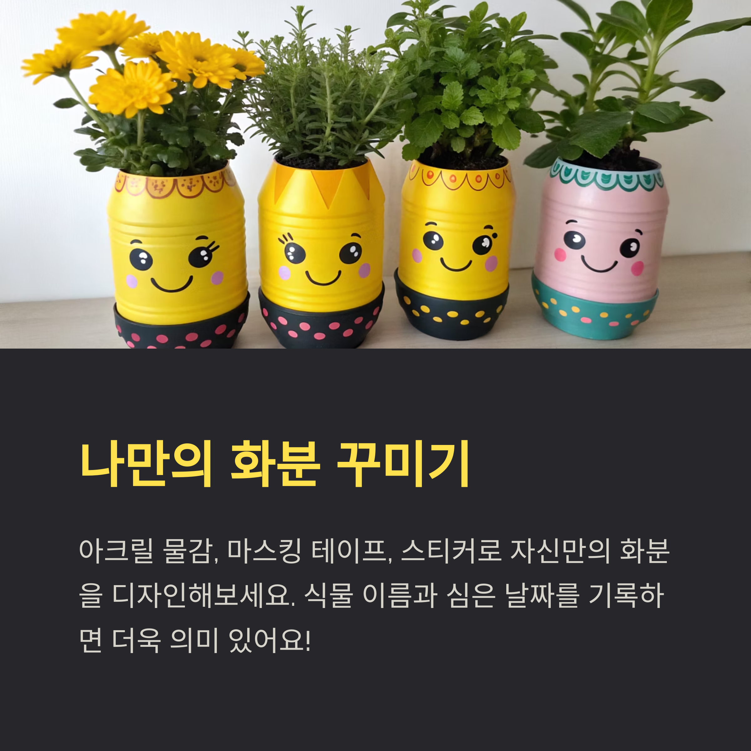 자신만의 화분을 디자인해보세요. 식물 이름표와 심은 날짜를