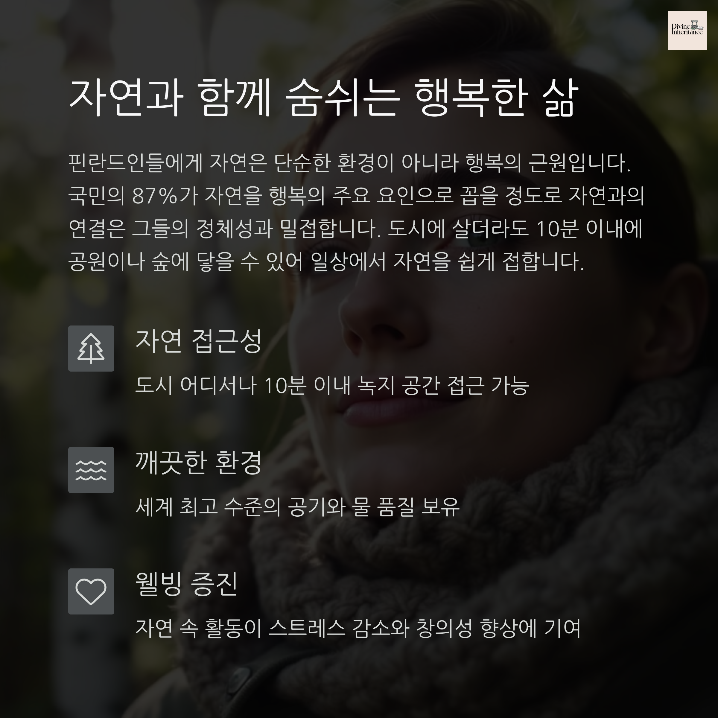| 핀란드 행복 요인 | 자연, 사회적 신뢰, 복지, 경제 안정이 핵심입니다. |