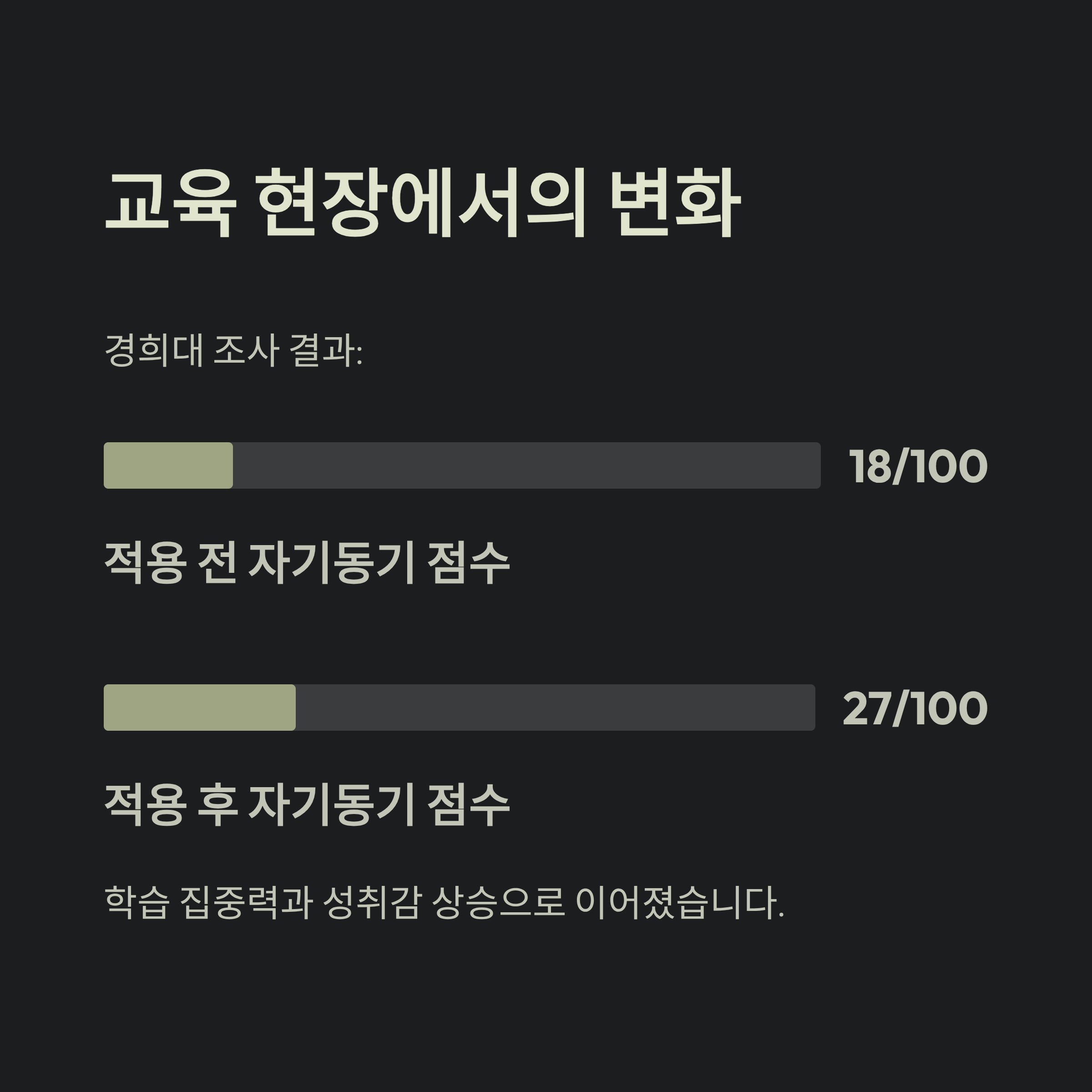이는 학습 집중력과 성취감의 상승으로 이어졌습니다.