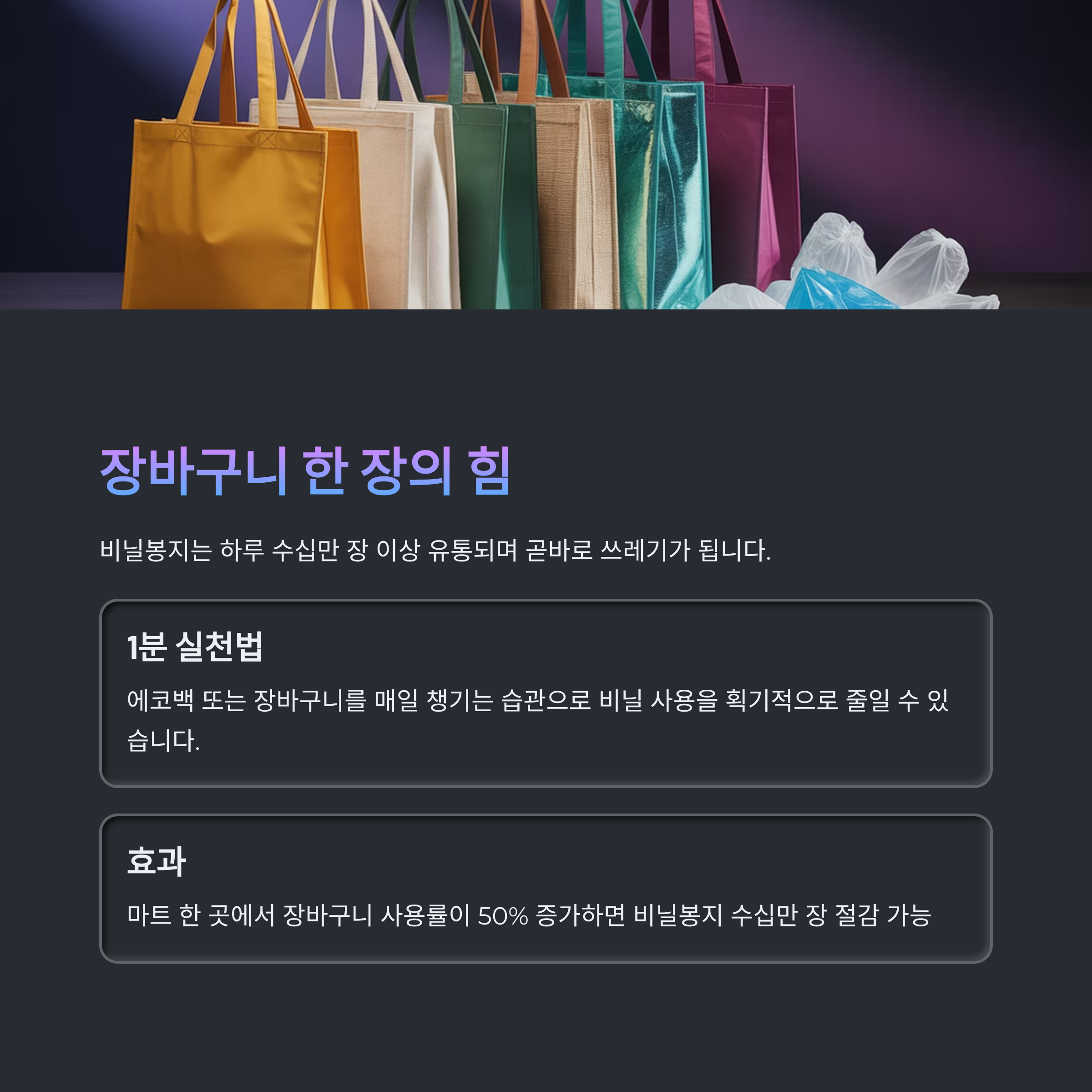 비닐봉지 수십만 장의 절감 효과를 기대할 수 있습니다.