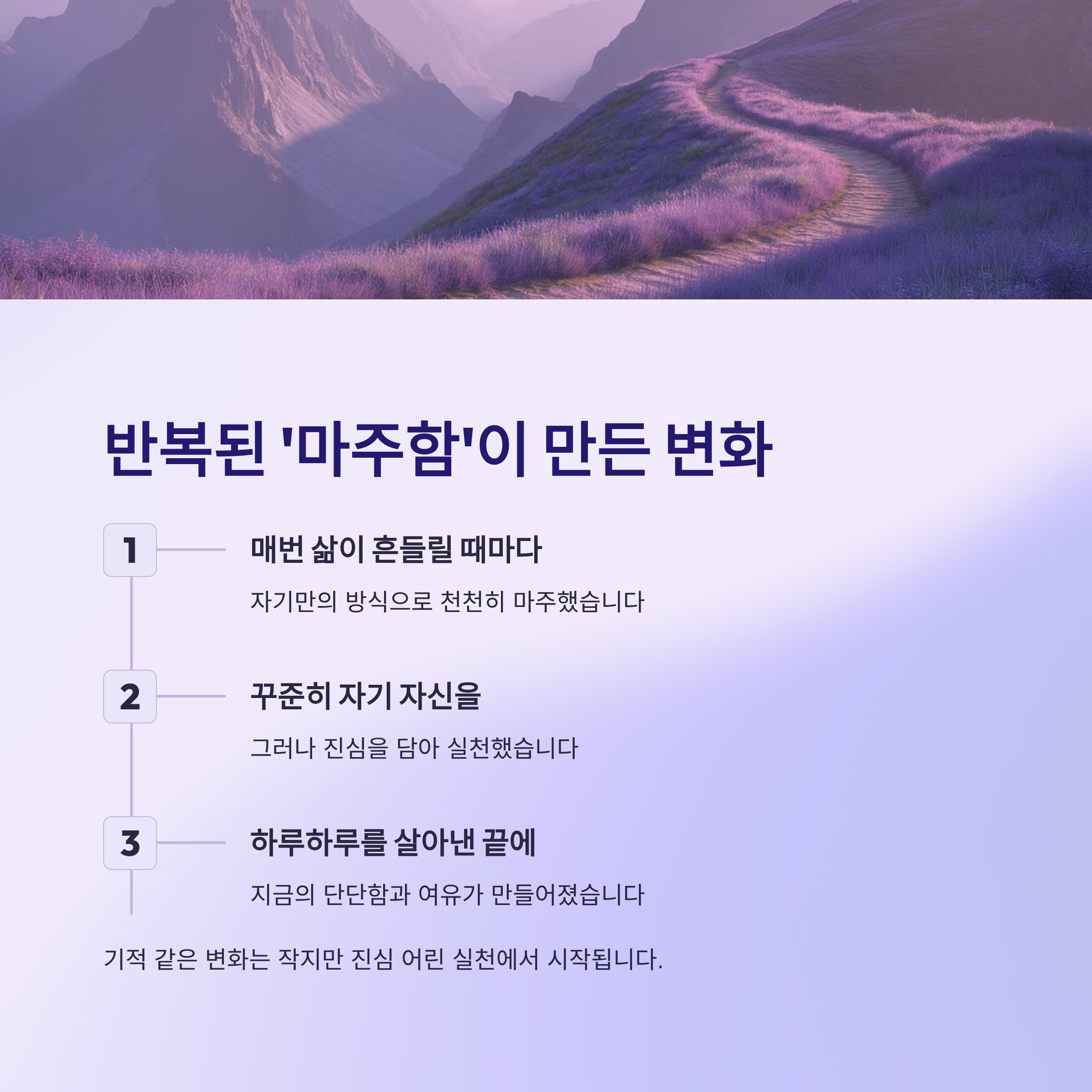삶이 바뀐 건 특별한 계기가 아니라, 반복된 ‘마주함’ 덕분