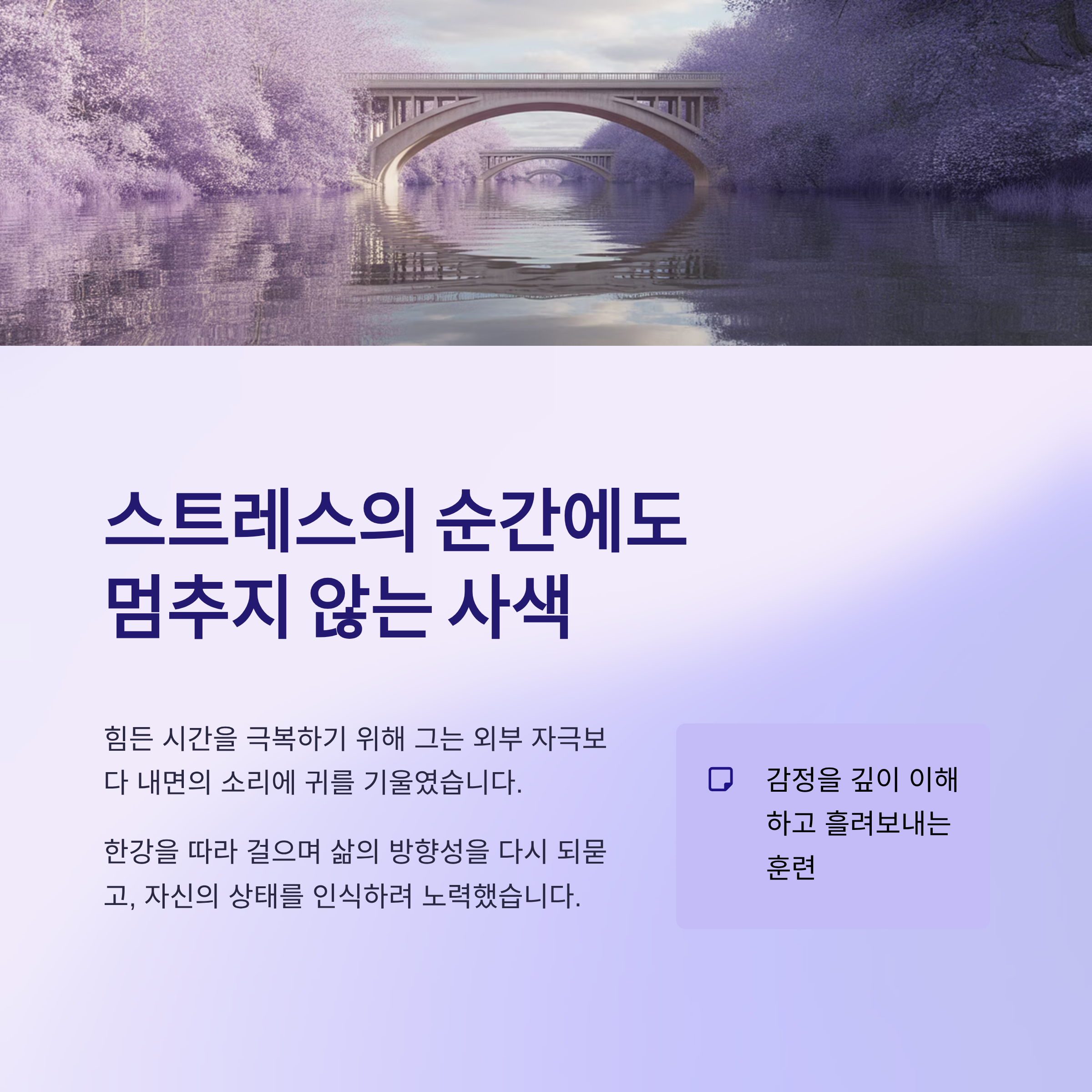 스트레스의 순간에도, 멈추지 않는 사색