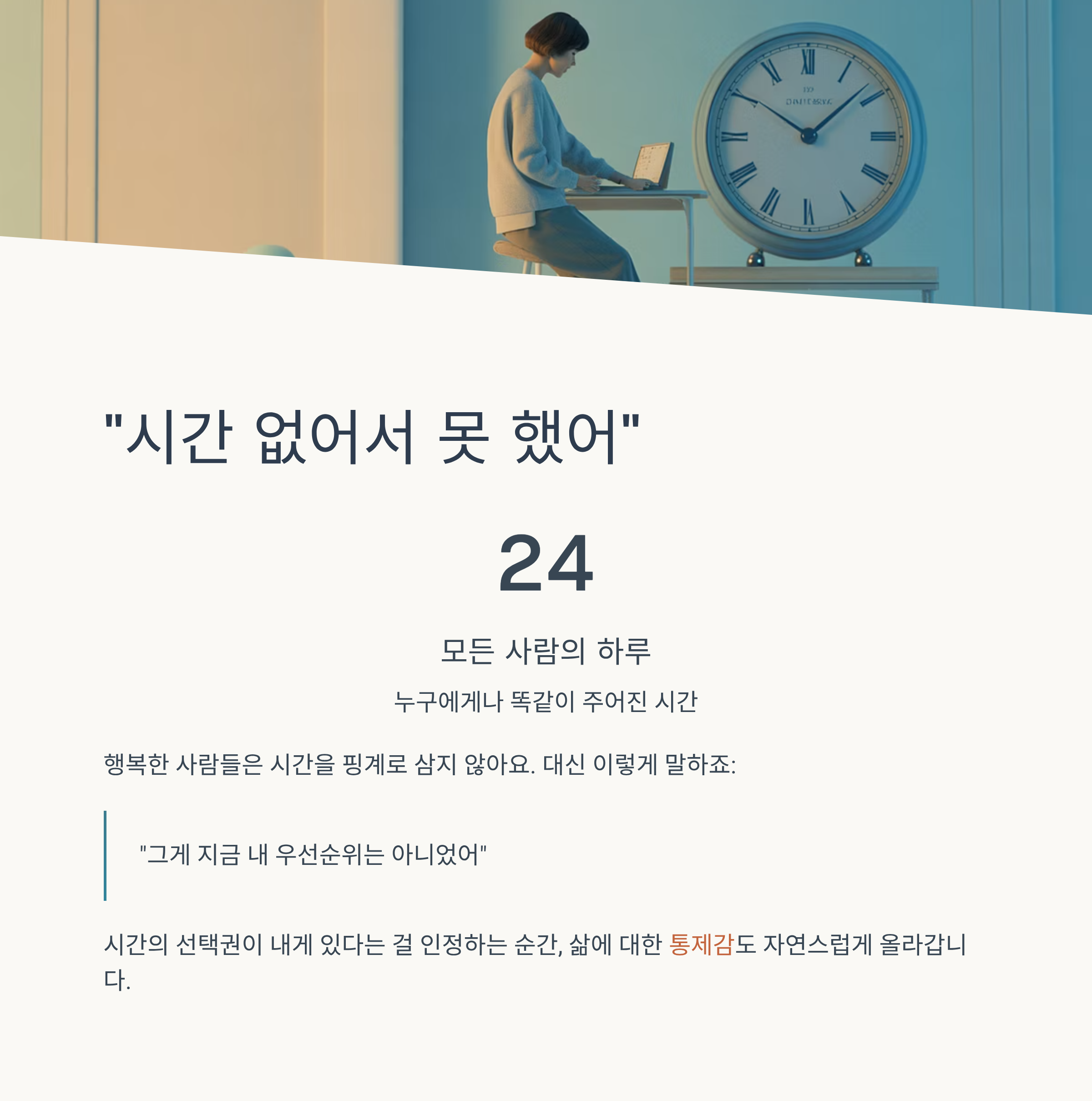 행복한 사람들은 시간을 핑계로 삼지 않아요.