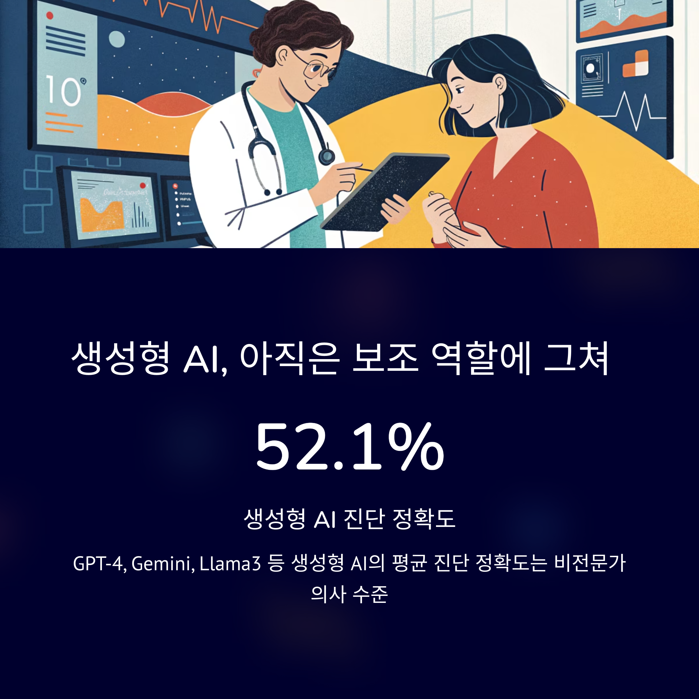 GPT-4, Gemini, Llama3 등 생성형 AI는 의료적 진단에 활용될 수 있지만, 아직은 전문가 수준에 도달하지