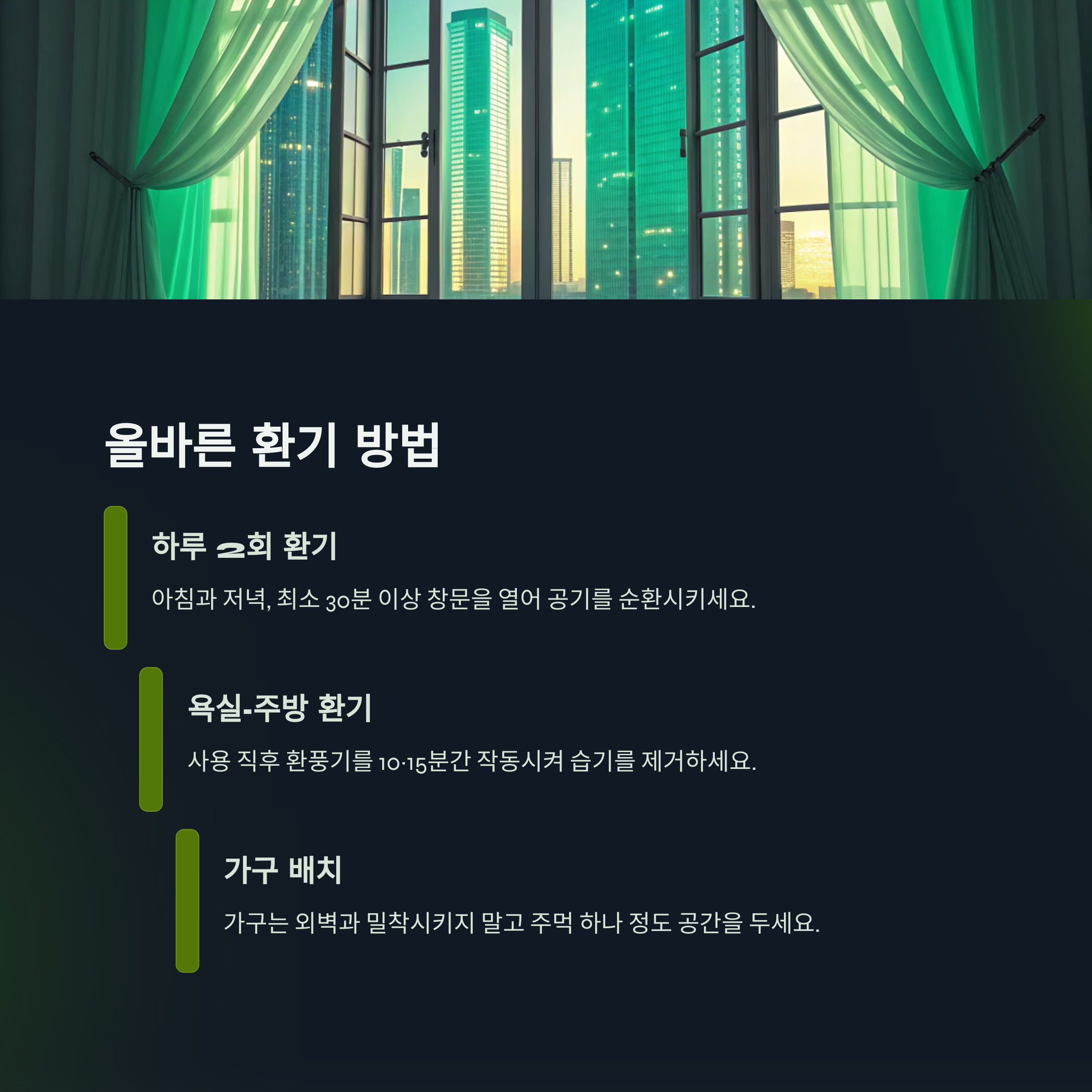 하루 2회, 30분 이상 환기가 곰팡이 예방의 기본입니다