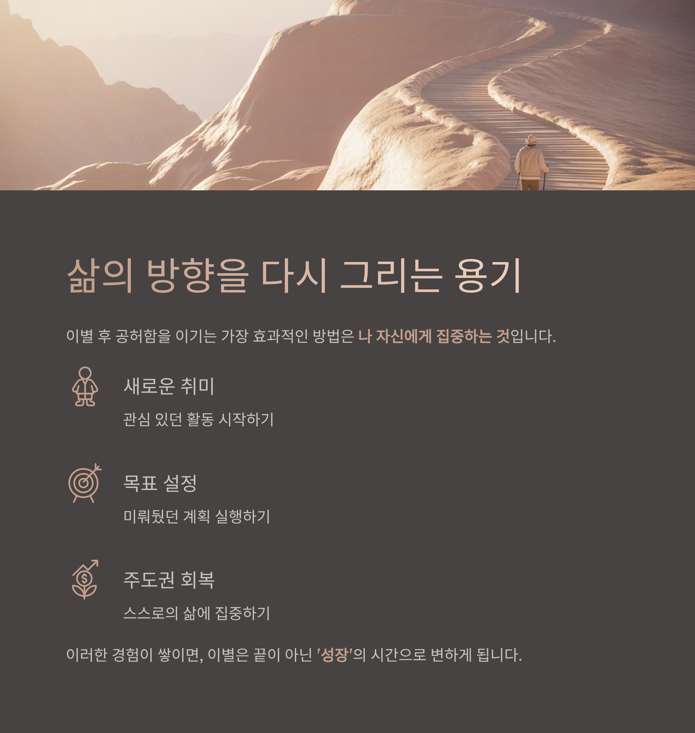 이러한 경험이 쌓이면, 이별은 끝이 아닌 ‘성장’의 시간으로 변하게 됩니다.