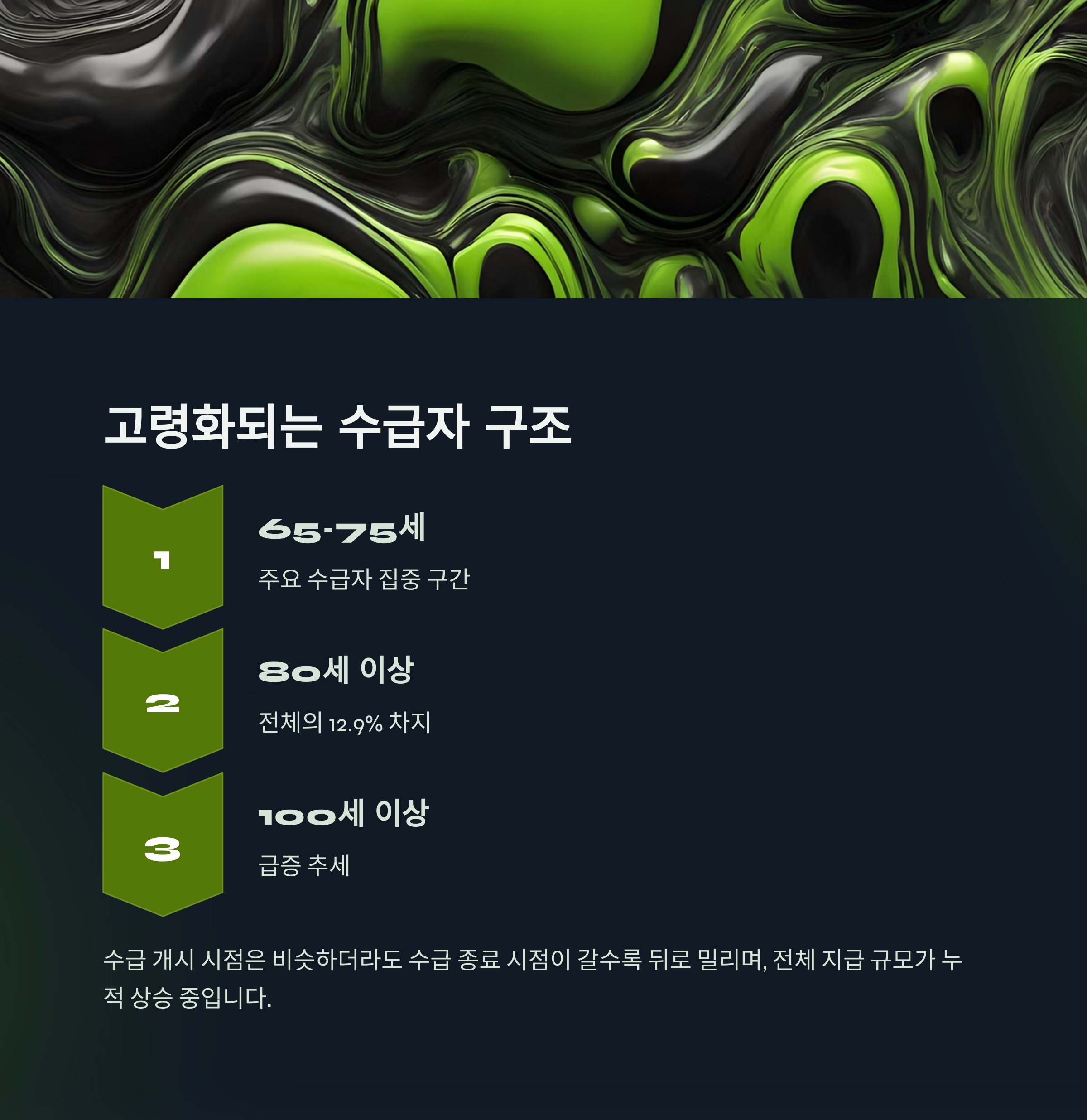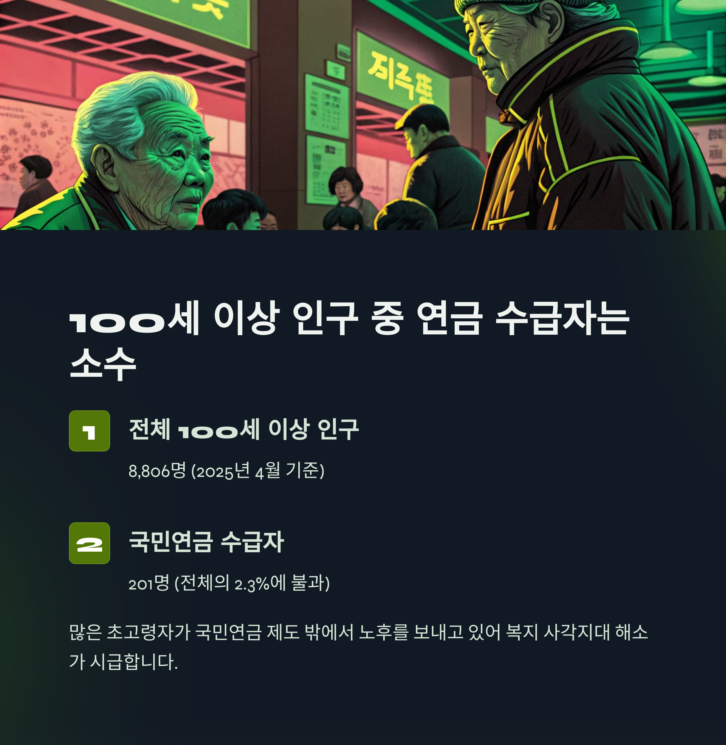 "100세 이상 연금 수급자는 단순한 숫자가 아닌, 우리 사회의 연금 제도가 마주한 미래의 단면입니다."