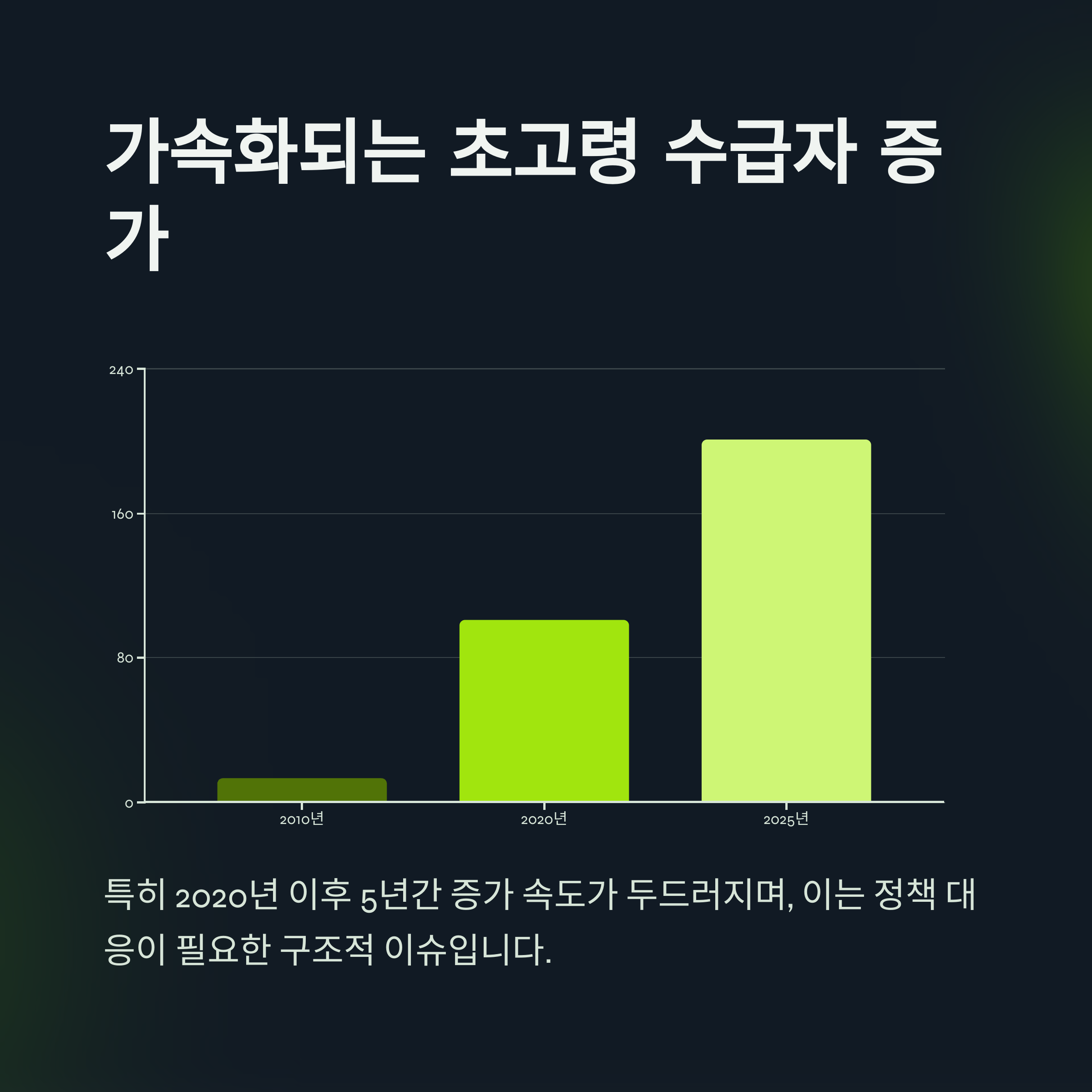 고령 인구의 급증은 단순히 인구 구조의 변화가 아닌 제도적 지속 가능성에 대한 직접 도전입니다.