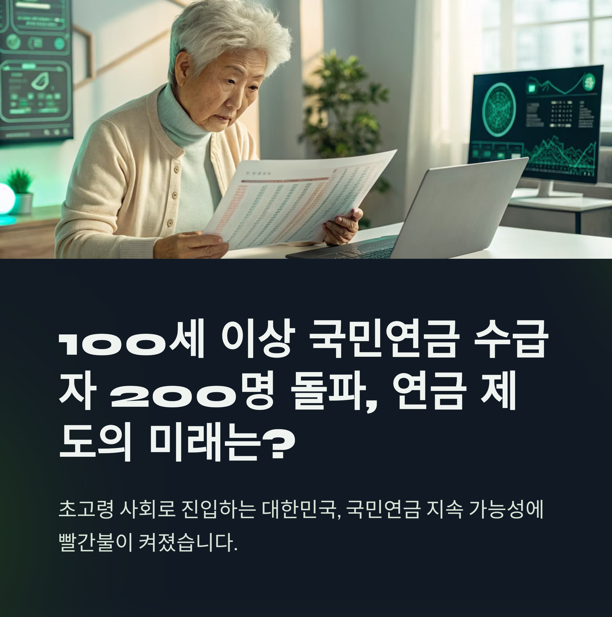 대한민국의 고령화 속도가 갈수록 빨라지면서 국민연금 수급자 구성에도 뚜렷한 변화가 나타나고 있습니다. 특히 100세 이상 수급자가 사상 처음으로 200명을 넘어선 것은 연금 제도의 구조적 재검토 필요성을 시사합니다. 이 글에서는 100세 이상 국민연금 수급자 현황과 그 증가 원인, 재정적 파급 효과를 중심으로 살펴보겠습니다.