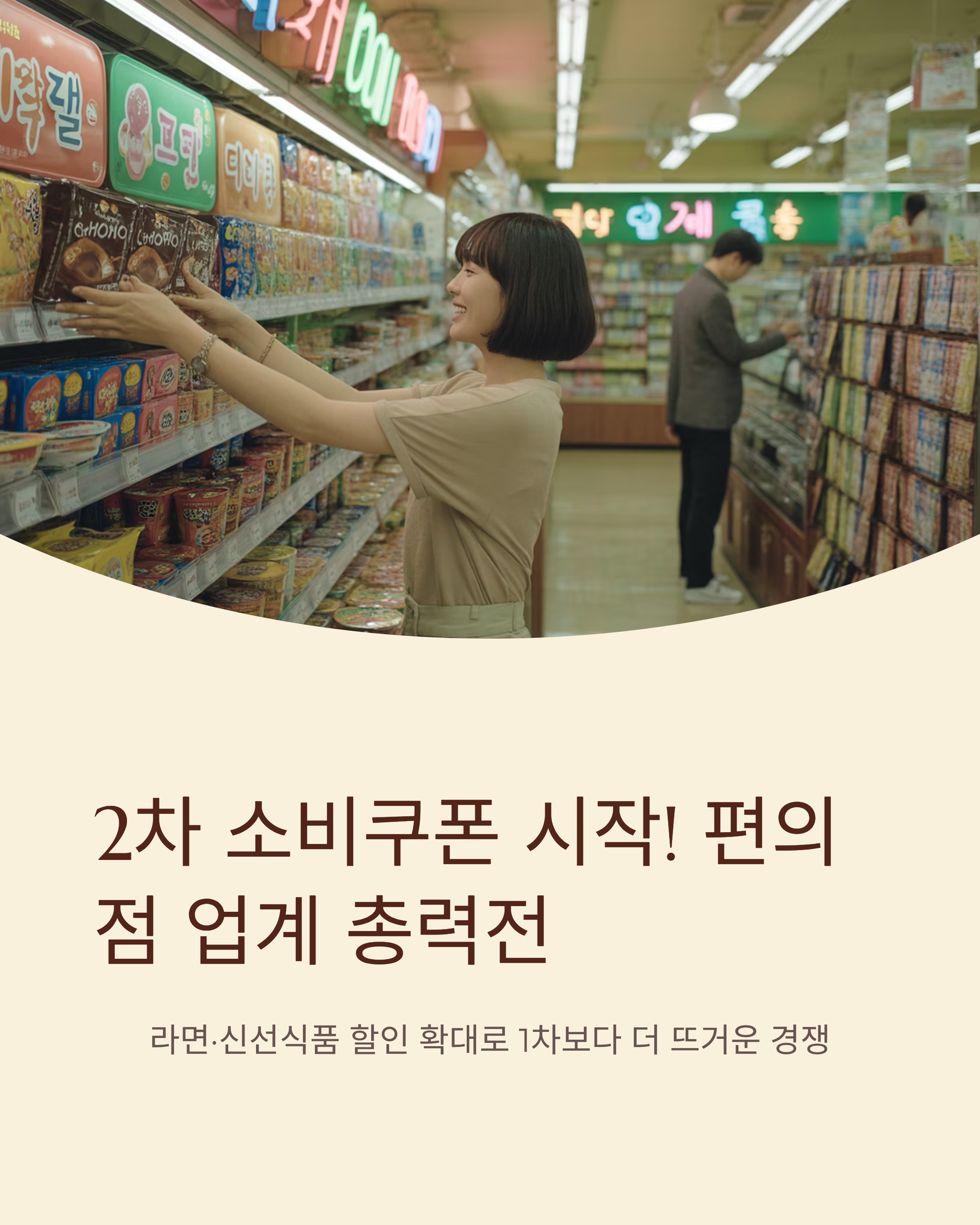 정부의 2차 소비쿠폰 지원책이 본격화되며, 편의점 업계가 다시 한번 판을 키우고 있습니다. 1차 쿠폰 당시 소비자 반응이 뜨거웠던 라면과 신선식품을 중심으로 대대적인 할인과 프로모션이 확대되고 있는데요. 이에 따라 각 편의점 브랜드는 소비자 유치에 총력을 기울이고 있는 모습입니다. 이번 글에서는 편의점 업계가 어떤 전략으로 2차 소비쿠폰 시장을 대응하고 있는지 살펴봅니다.