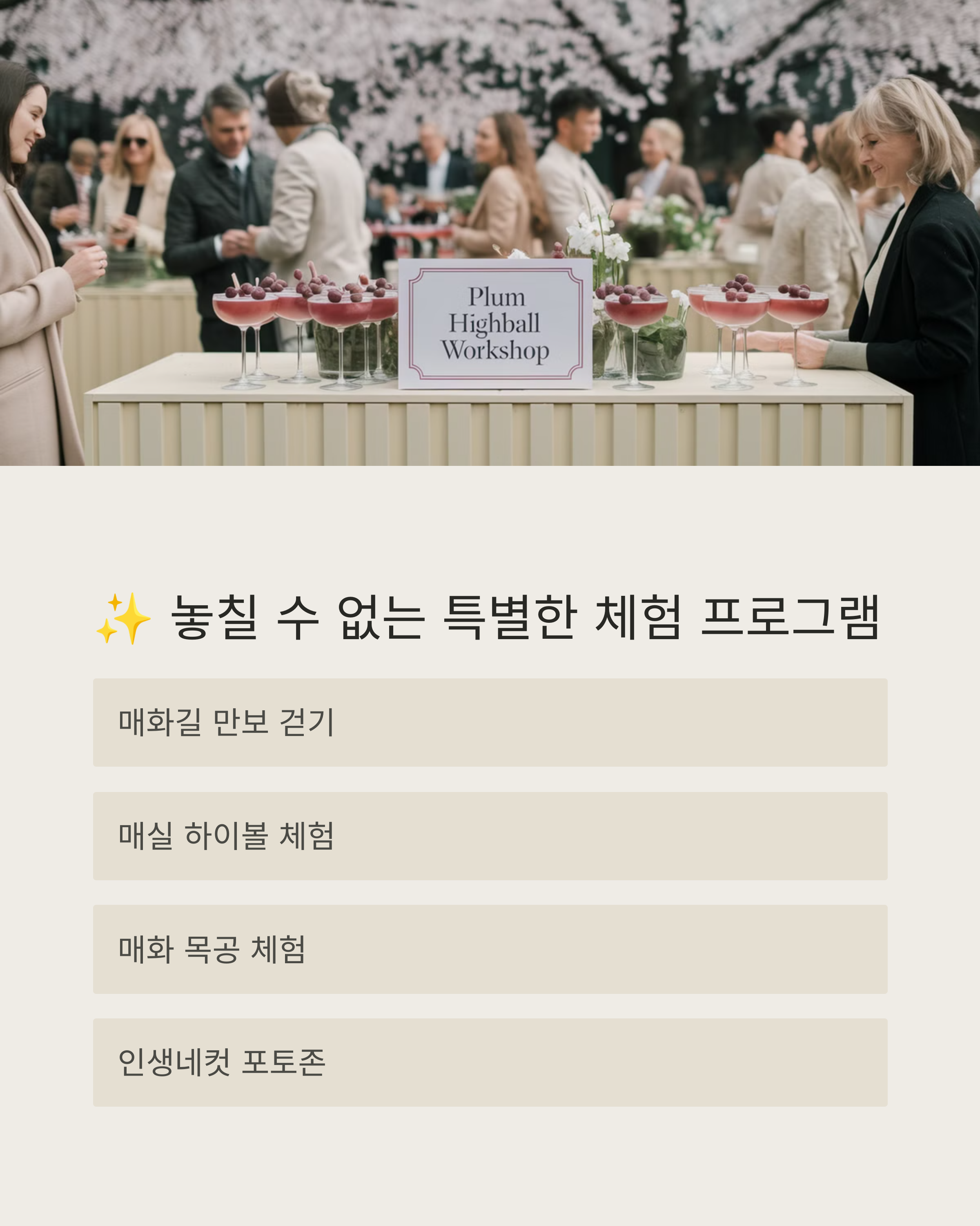 광양 매화축제에 가본 적이 있으신가요? 또는 올해 방문할 계획이 있으신가요? 기대되는 프로그램이나 가장 가고 싶은 장소를 댓글로 남겨주세요! 여러분의 경험과 팁이 다른 독자들에게 큰 도움이 될 것입니다.
