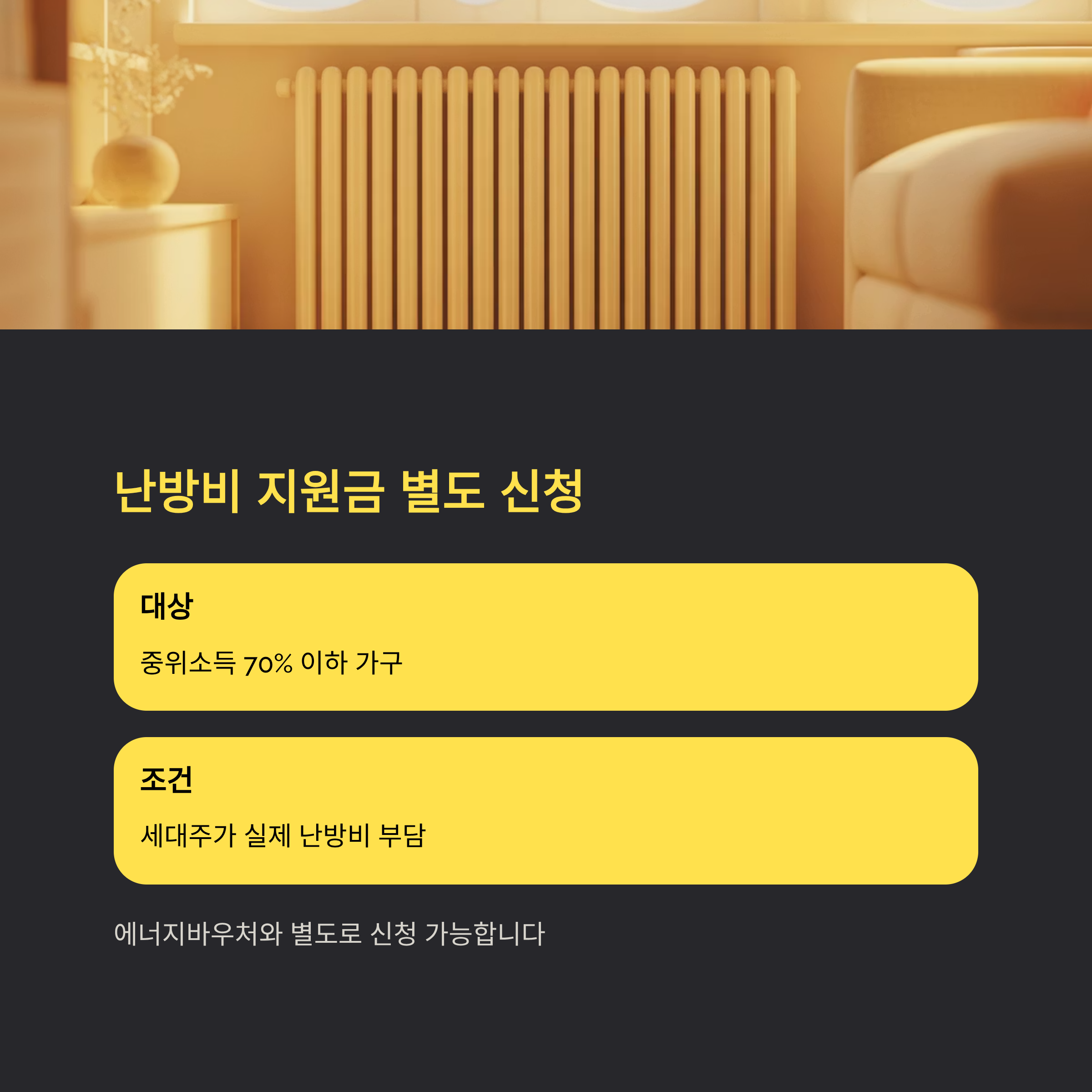 중위소득 70% 이하 가구이면서, 세대주가 실제로 난방비를 부담하는 경우가 대상입니다.
