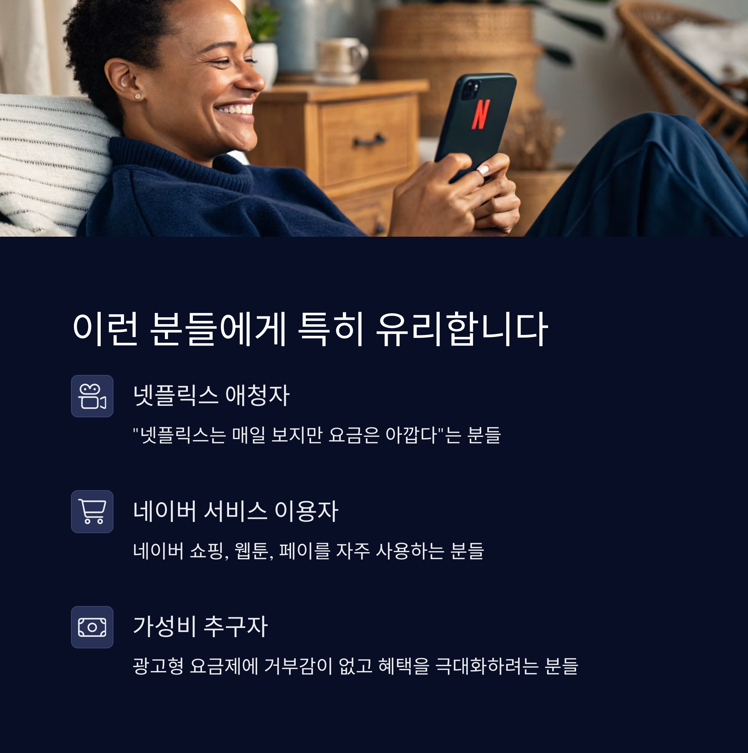 네이버 쇼핑, 웹툰, 페이를 자주 사용하는 분들에게는 추가 가성비 보너스까지 따라옵니다.