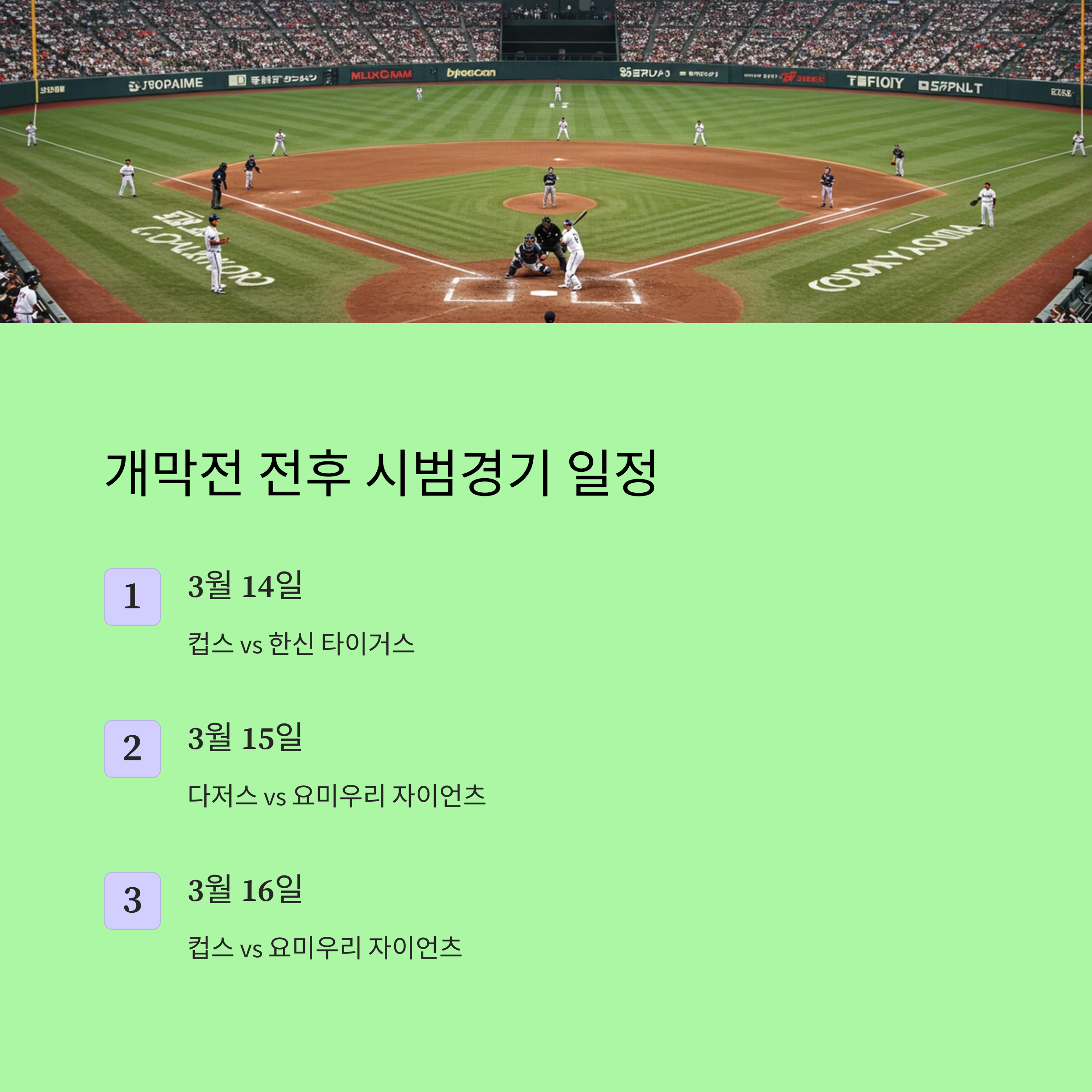 | 3월 18일 | 다저스 vs. 컵스 | 도쿄돔 |