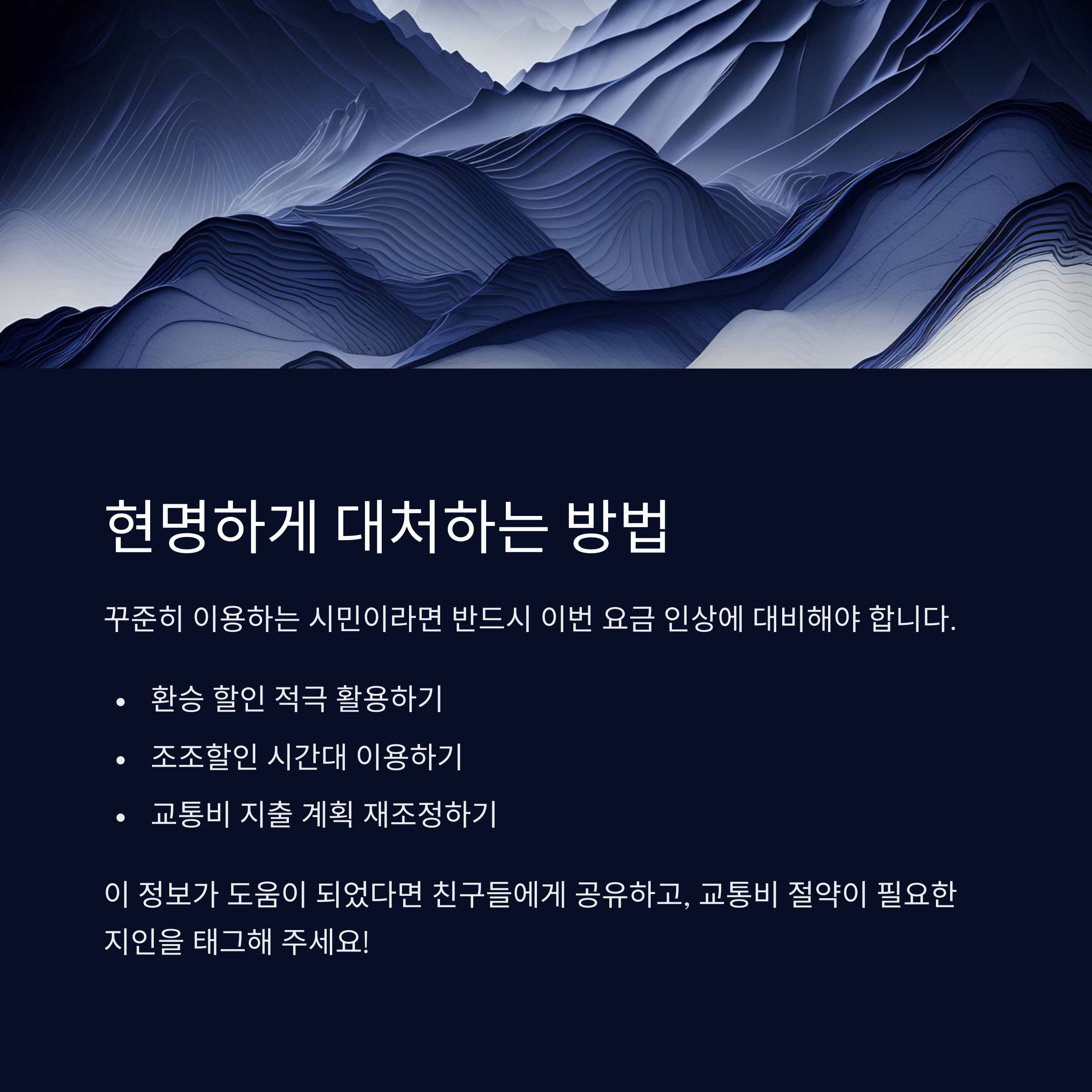 "꾸준히 이용하는 시민이라면 반드시 이번 요금 인상에 대비해야 합니다."