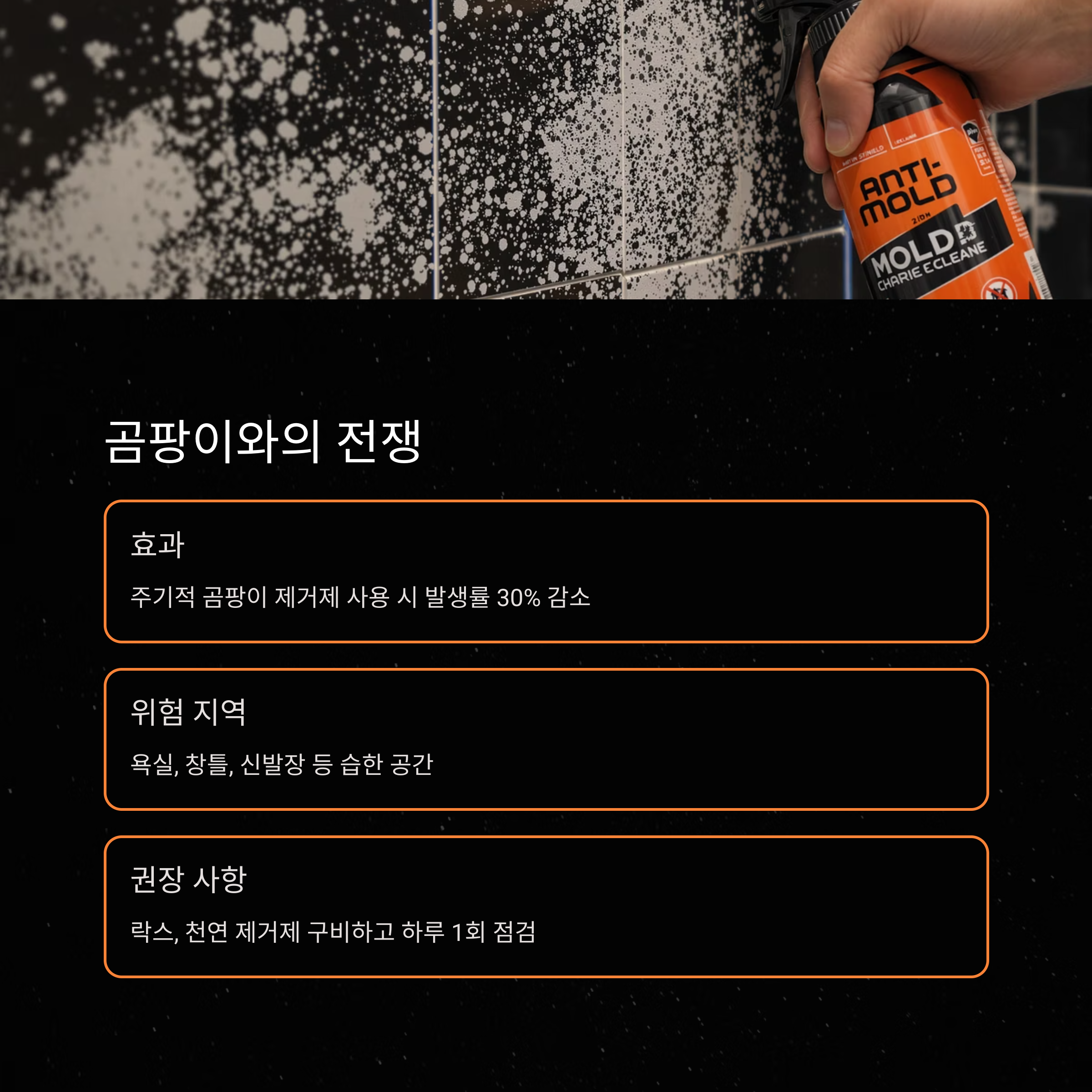 "주기적 곰팡이 제거제 사용 시 곰팡이 발생률 30% 감소"