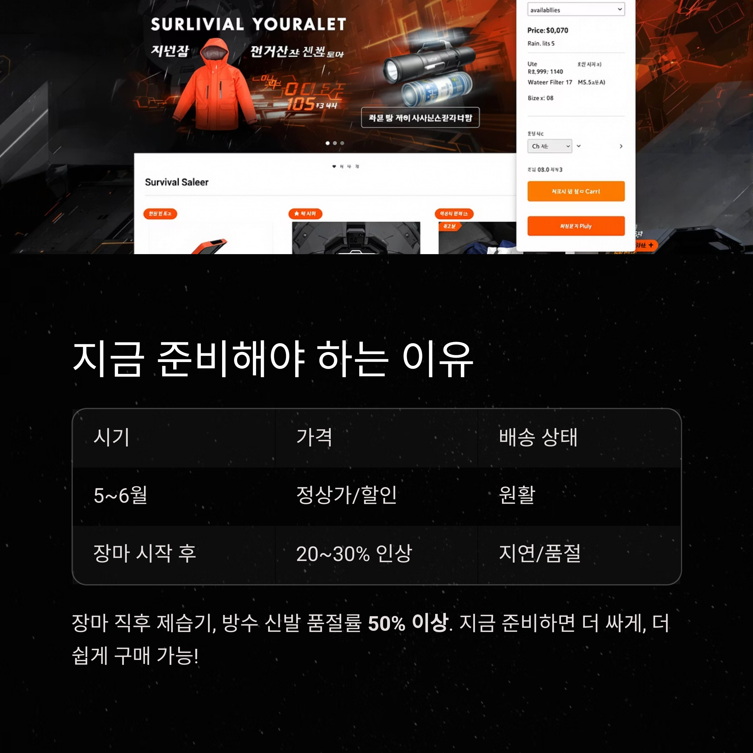 지금 준비하면 더 싸게, 더 쉽게 생존템을 확보할 수 있습니다.