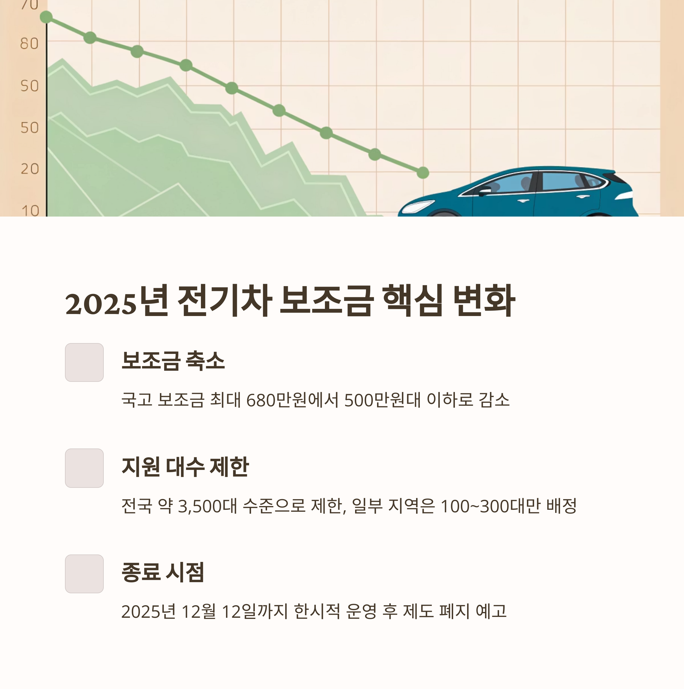 2025년은 전기차 보조금이 대폭 축소되거나 종료되는 시점입니다. 정부는
