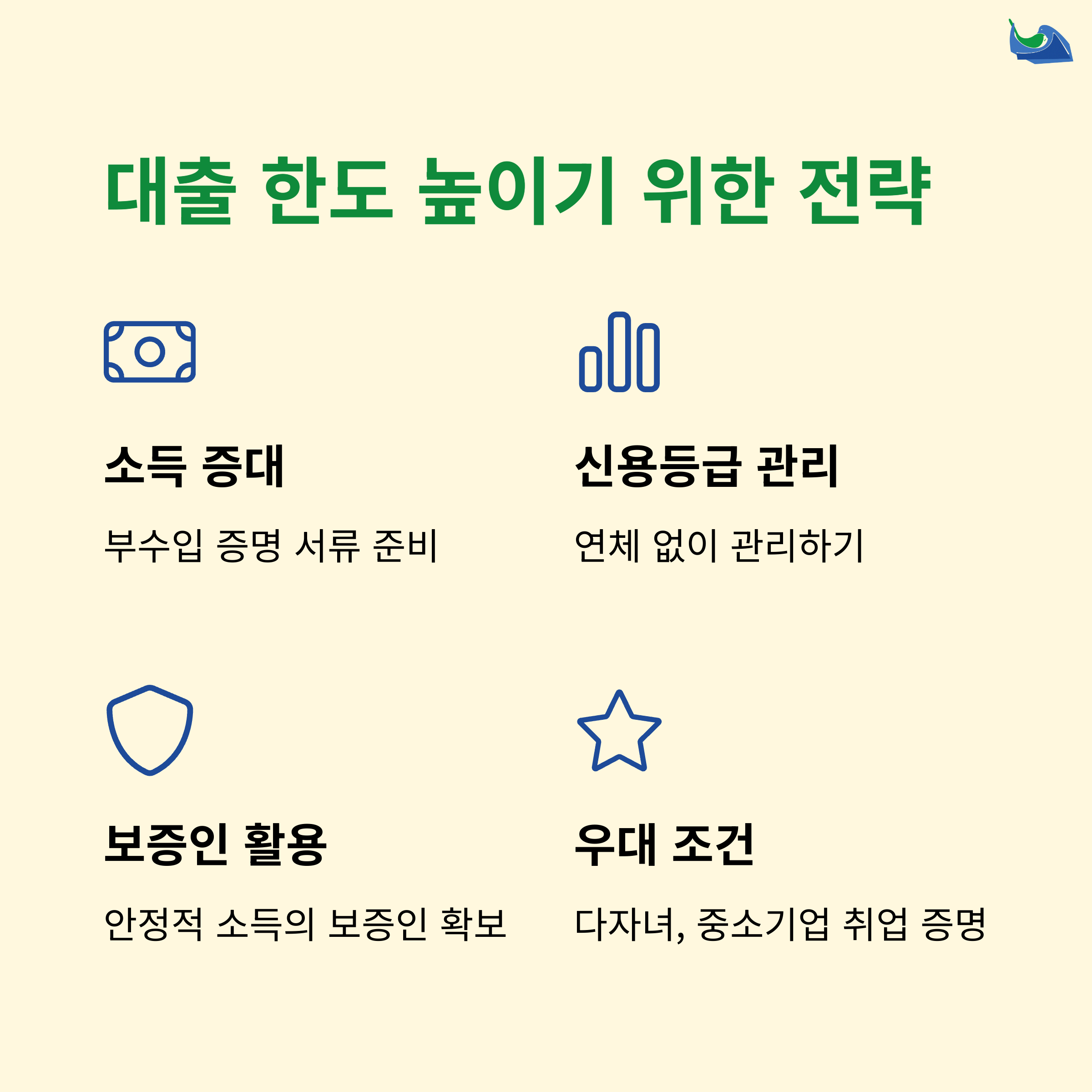 대출 한도를 높이기 위해서는 소득 증대나 신용등급 관리 등 기본적인 금융 관리가 필수적입니다. 예를 들어 정규직 전환이나 추가 소득 확보를 통해 전세보증금의 최대 한도까지 대출을 받을 수 있으며, 신용등급이 높을수록 유리한 조건이 적용됩니다. 또한, 중소기업 취업 청년, 다자녀 가구, 월세 성실 납부자 등 다양한 우대 조건을 적극 활용하면 금리 감면과 더불어 대출 한도도 늘릴 수 있습니다. 금융 생활의 작은 변화가 큰 혜택으로 돌아올 수 있음을 명심해야 합니다.